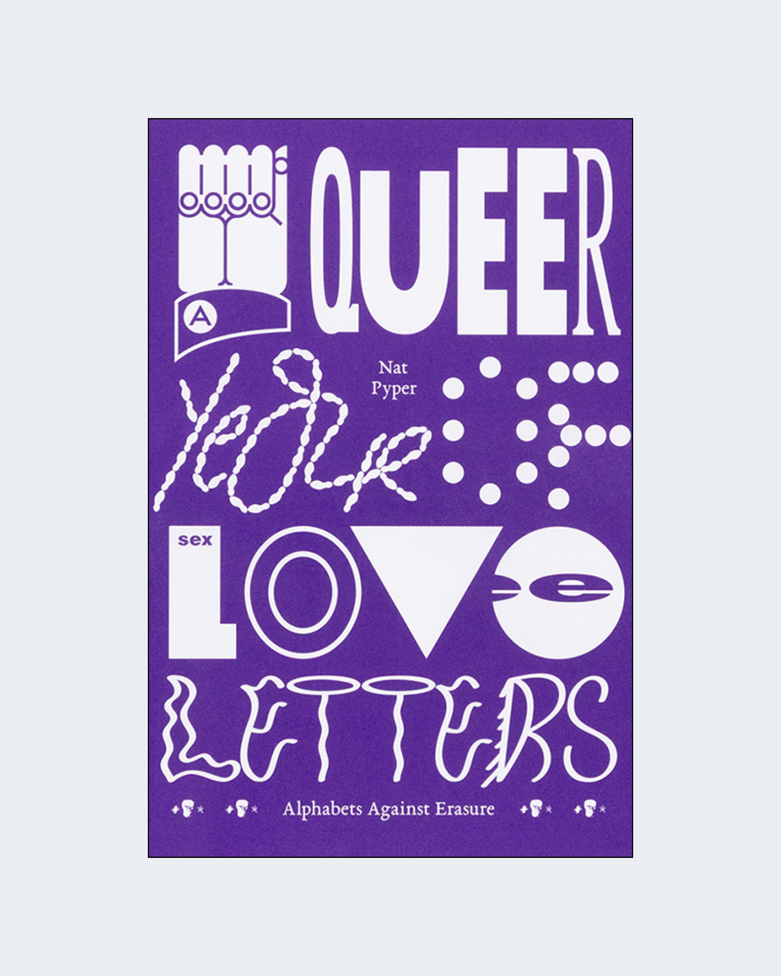 The book debuts a new essay by Pyper, and includes contributions from Paul Soulellis, Claire Star Finch, Silas Munro, Lukaza Branfman-Verissimo, Rosen Eveleigh, and G. B. Jones that offer vital perspectives on queer archival practices, language lineages, design as protest, and love as the basis for research. Part reader, part type specimen, part love letter, these fonts foreground the politics of queer memory while opening up new avenues for writers, designers, and curious readers.