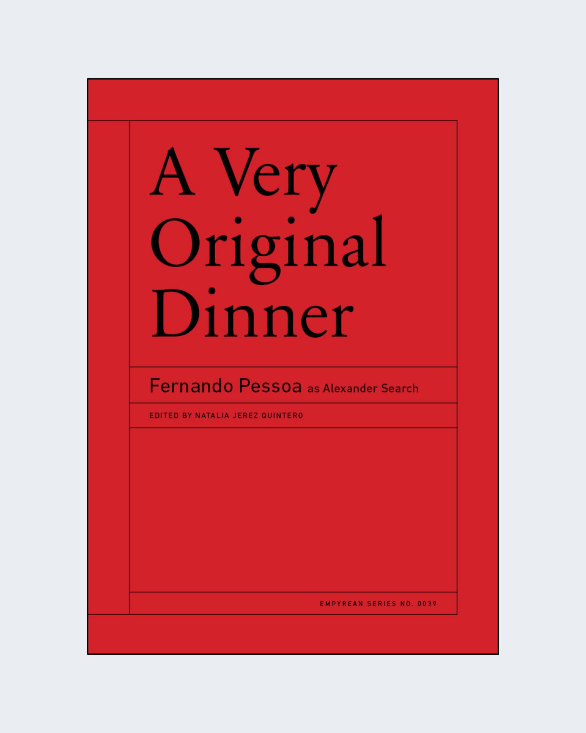 Clearly under the influence of Edgar Allen Poe and the nascent field of degenerate psychology, "A Very Original Dinner" was written in English by Fernando Pessoa under his proto-heteronym Alexander Search in June of 1907. It was never published during his lifetime, and only came to light in 1978 when photocopies of the typescript were reproduced in Maria Leonor Machado de Sousa’s book Fernando Pessoa e a Literatura de Ficção. The version in this volume first appeared in A Very Original Book, a bi-lingual collection of Pessoa's writings as Search edited by Natalia Jerez Quintero. This is the story's first appearance in a trade volume in North America.