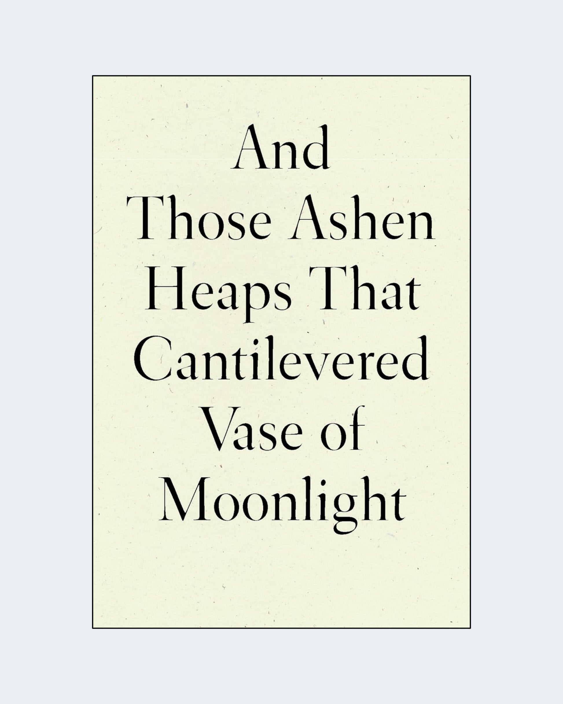 AND THOSE ASHEN HEAPS THAT CANTILEVERED VASE OF MOONLIGHT