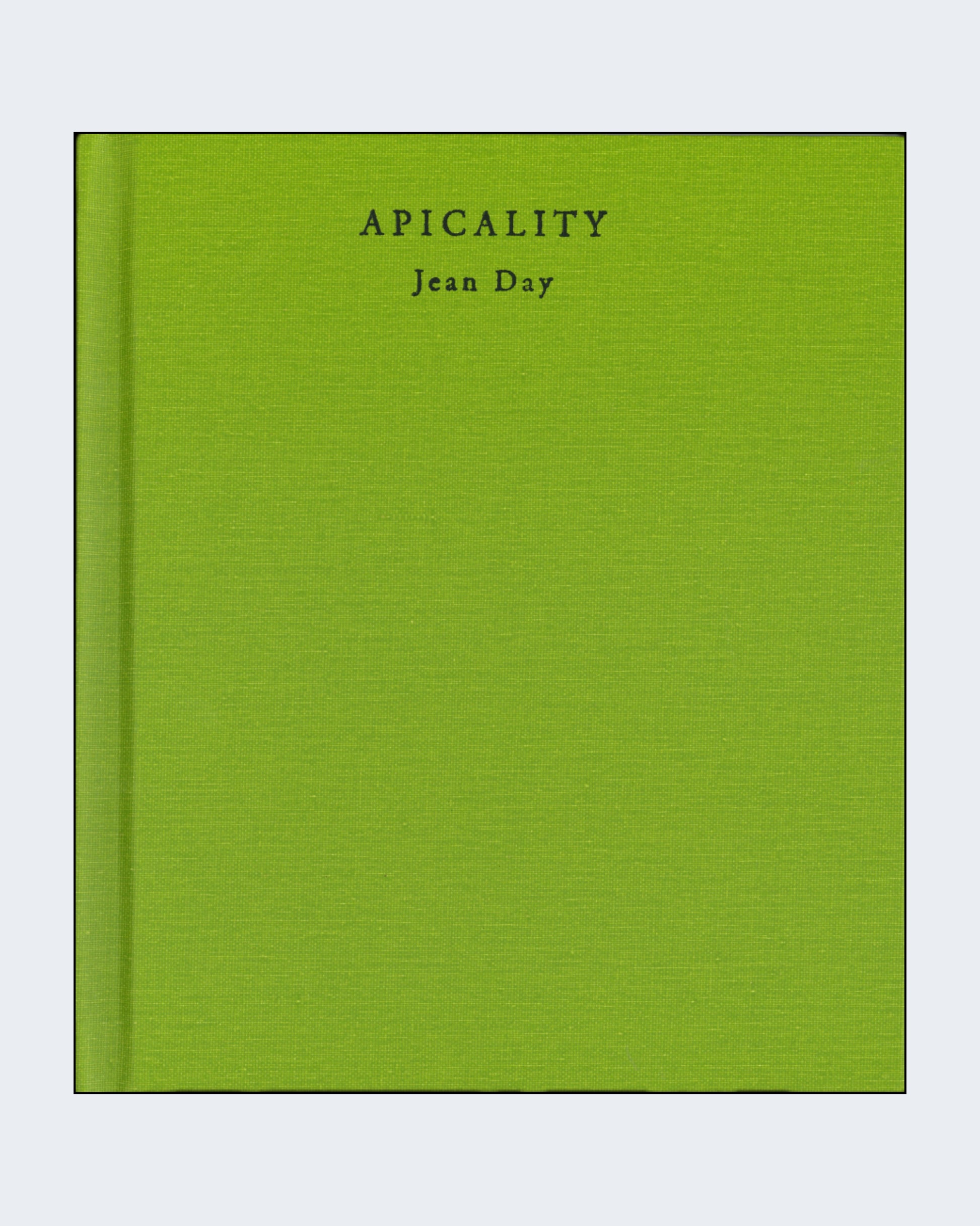 From the press: In Apicality (here, movement toward a point or apex, as in plant growth), Day concerns herself with morphologies writ large--those of creative plant and animal life, historical thinking, knowledge, sound patterning, shapes of optimism and its opposite. The book's two sequences ("Ex Ovo Omnia," "And Now This") are part of her larger, as yet unpublished The Elements, a work that probes first (and lost) causes.