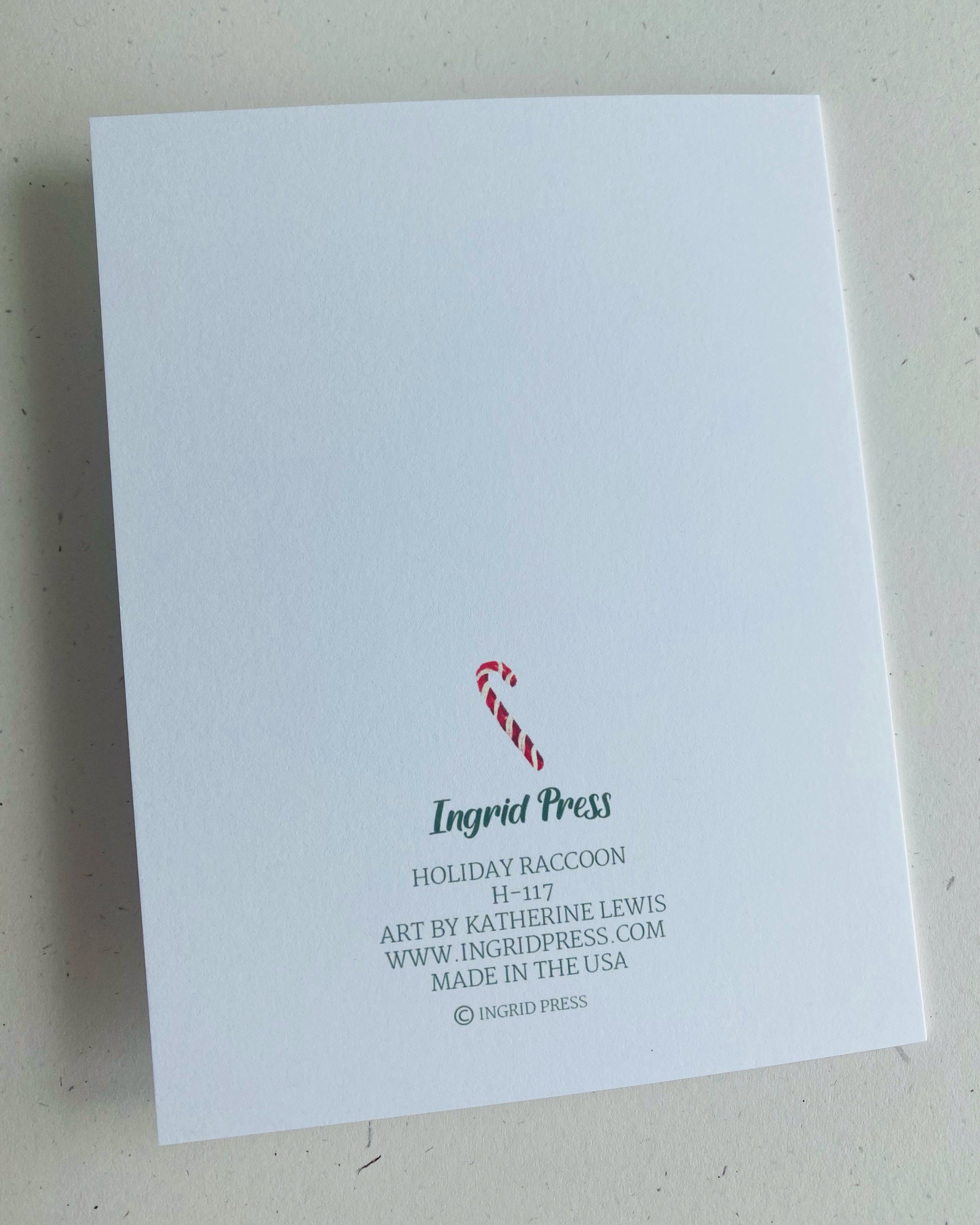 Ingrid Press, art by Katherine Lewis. Printed on un-coated white stock, white envelope. Blank inside. Size A2 4.25” x 5.5”