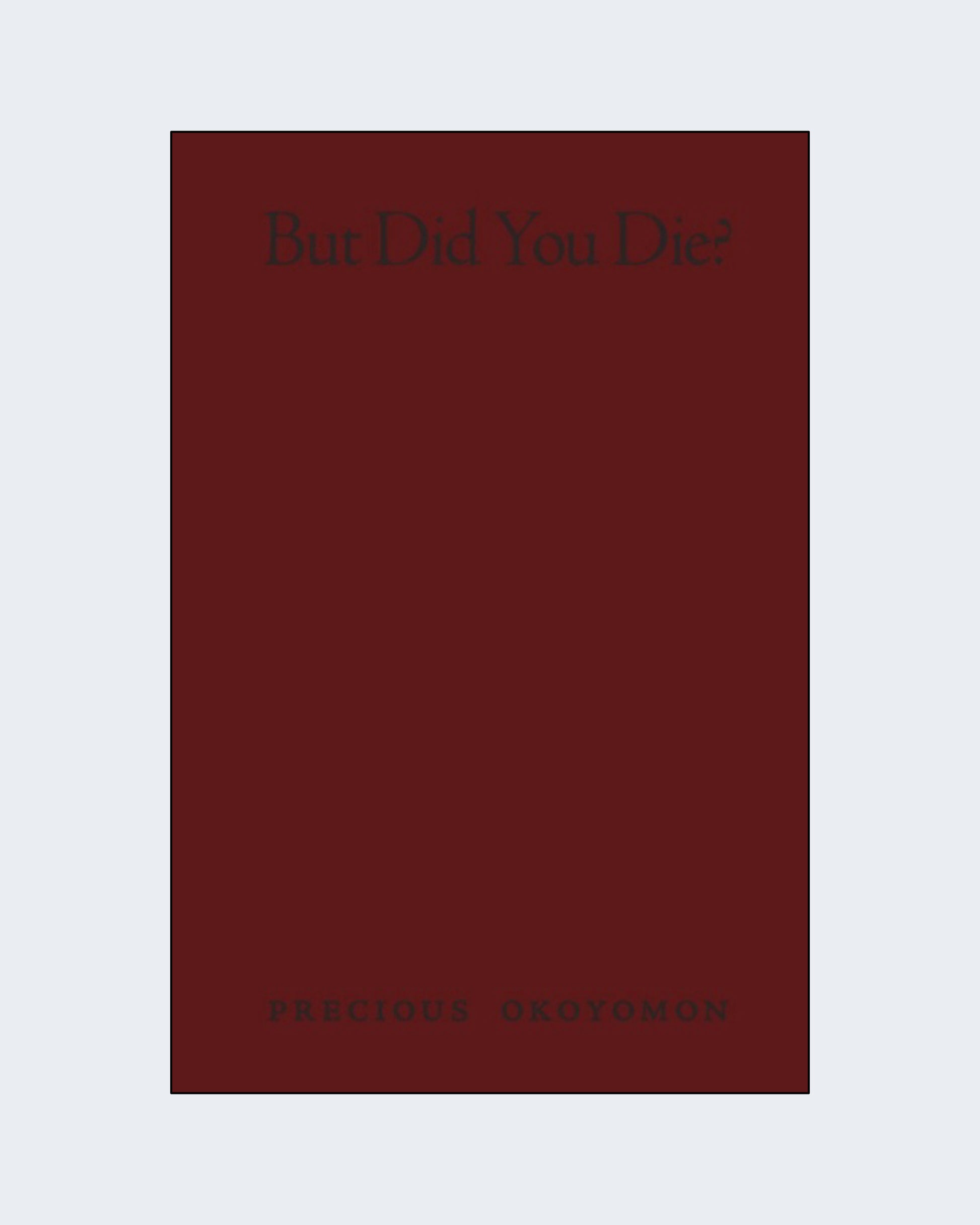 From the press: Precious Okoyomon's latest collection of poems But Did You Die? combines their signature divinely-inspired lyricism with vivid illuminations. Okoyomon's pantheism-in-verse brings the sensibility of their sublime installations to the page with poems that are as expressive as they are formally inventive. This delicate book weaves an unprecedented braid of poetry, experimental writing and drawing.