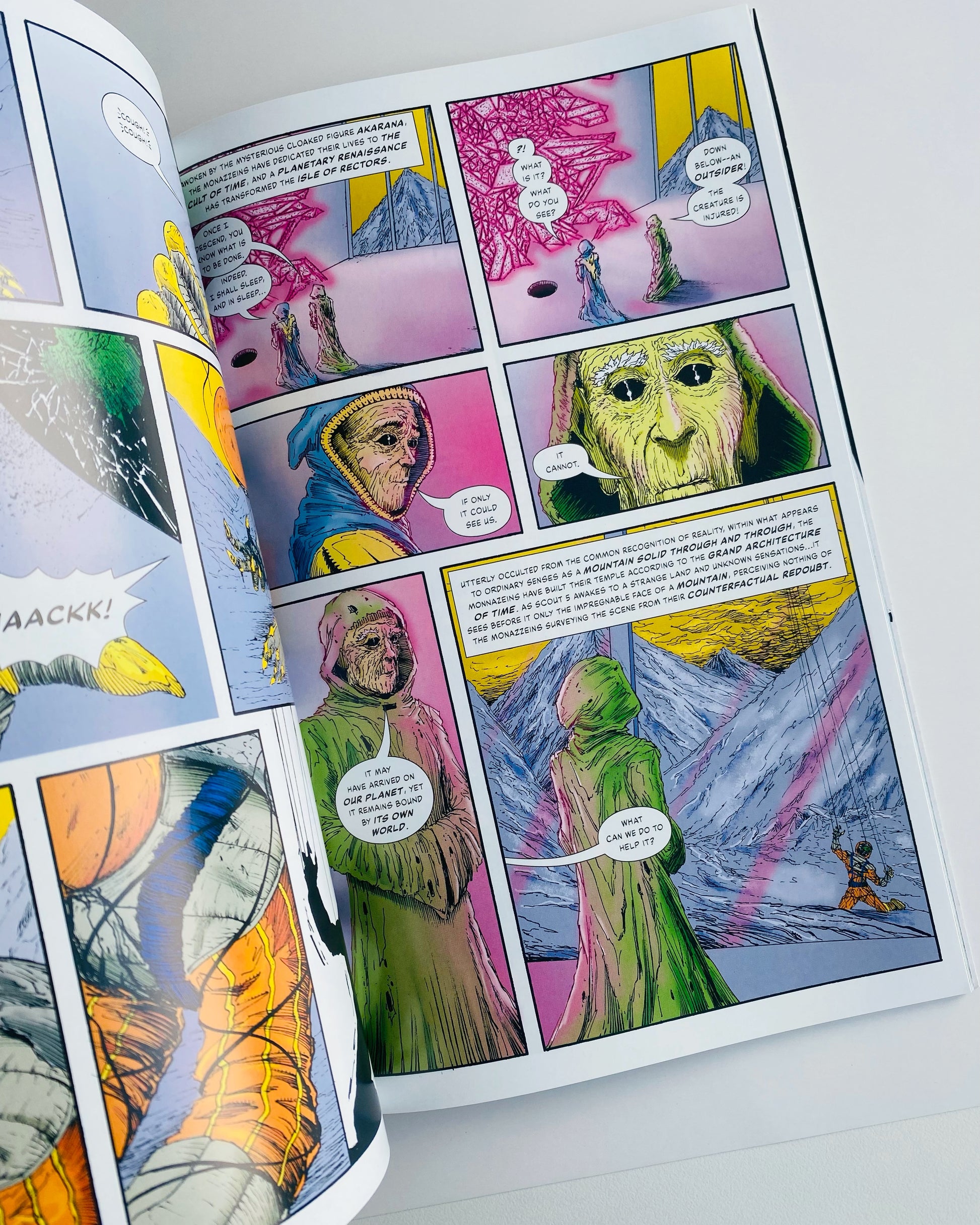 A unique fusion of comics culture and philosophical cogitation, this conceptually and visually mind-expanding tale takes the reader on a dizzying rollercoaster ride through time, space, and thought.