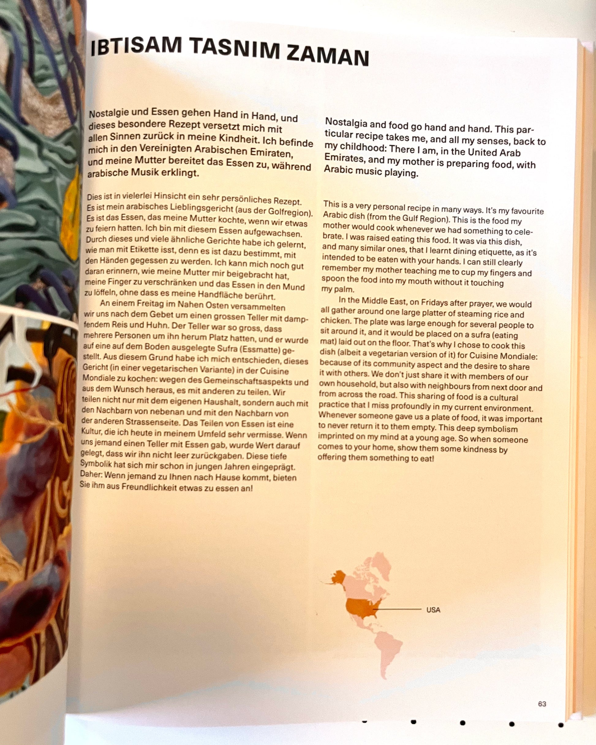 From the press: The artworks and favourite dishes of 30 artists from 23 countries: Art and cooking in an intercultural dialogue.