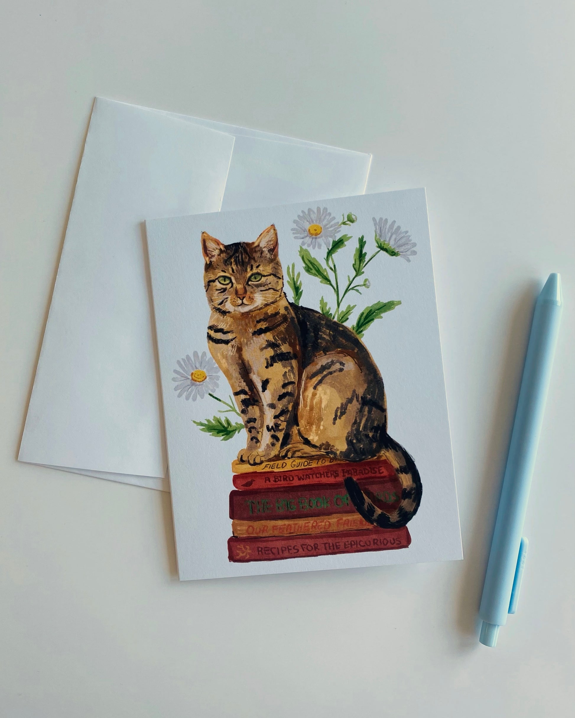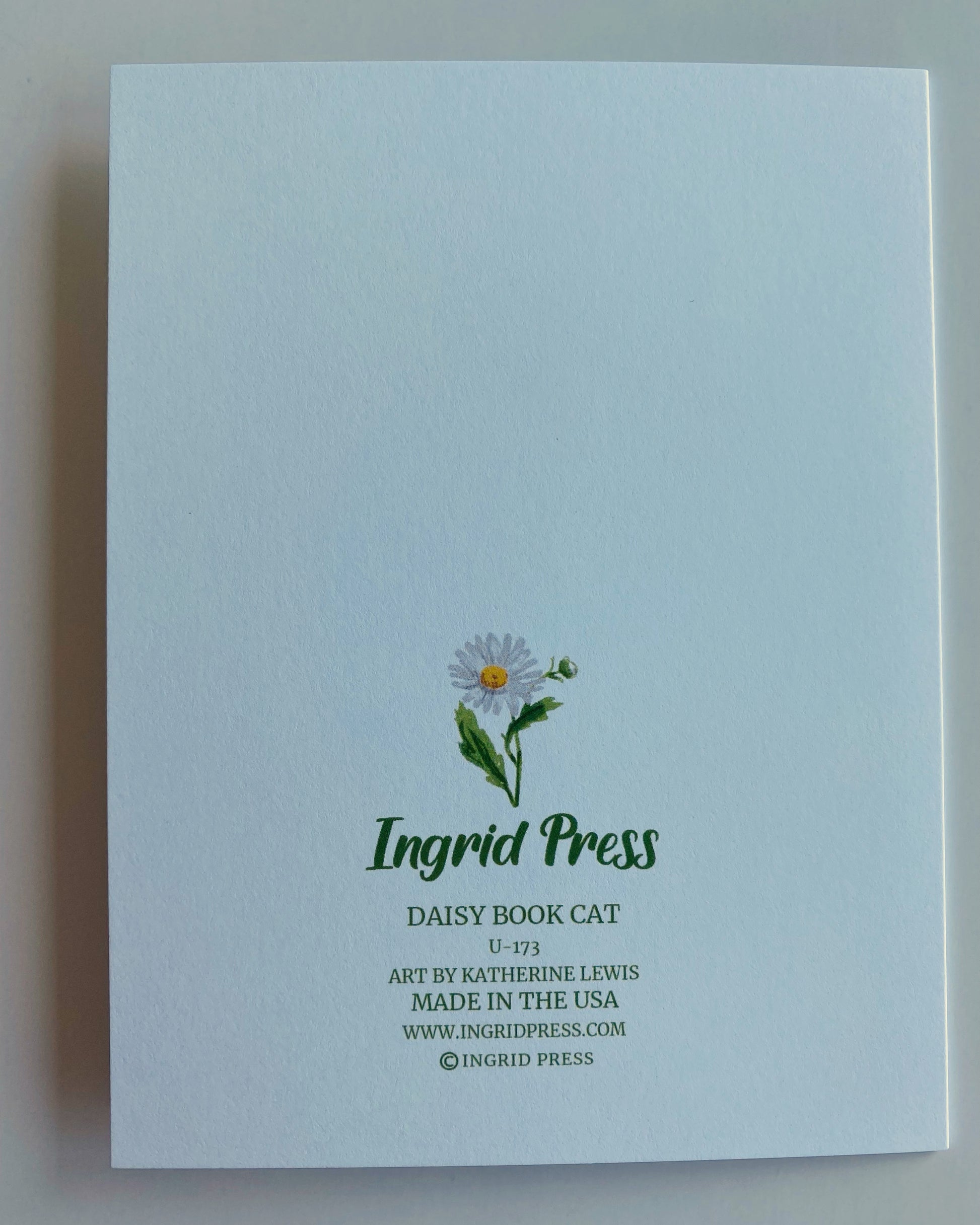 Ingrid Press, art by Katherine Lewis. Printed on un-coated white stock, white envelope. Blank inside. Size A2 4.25” x 5.5”