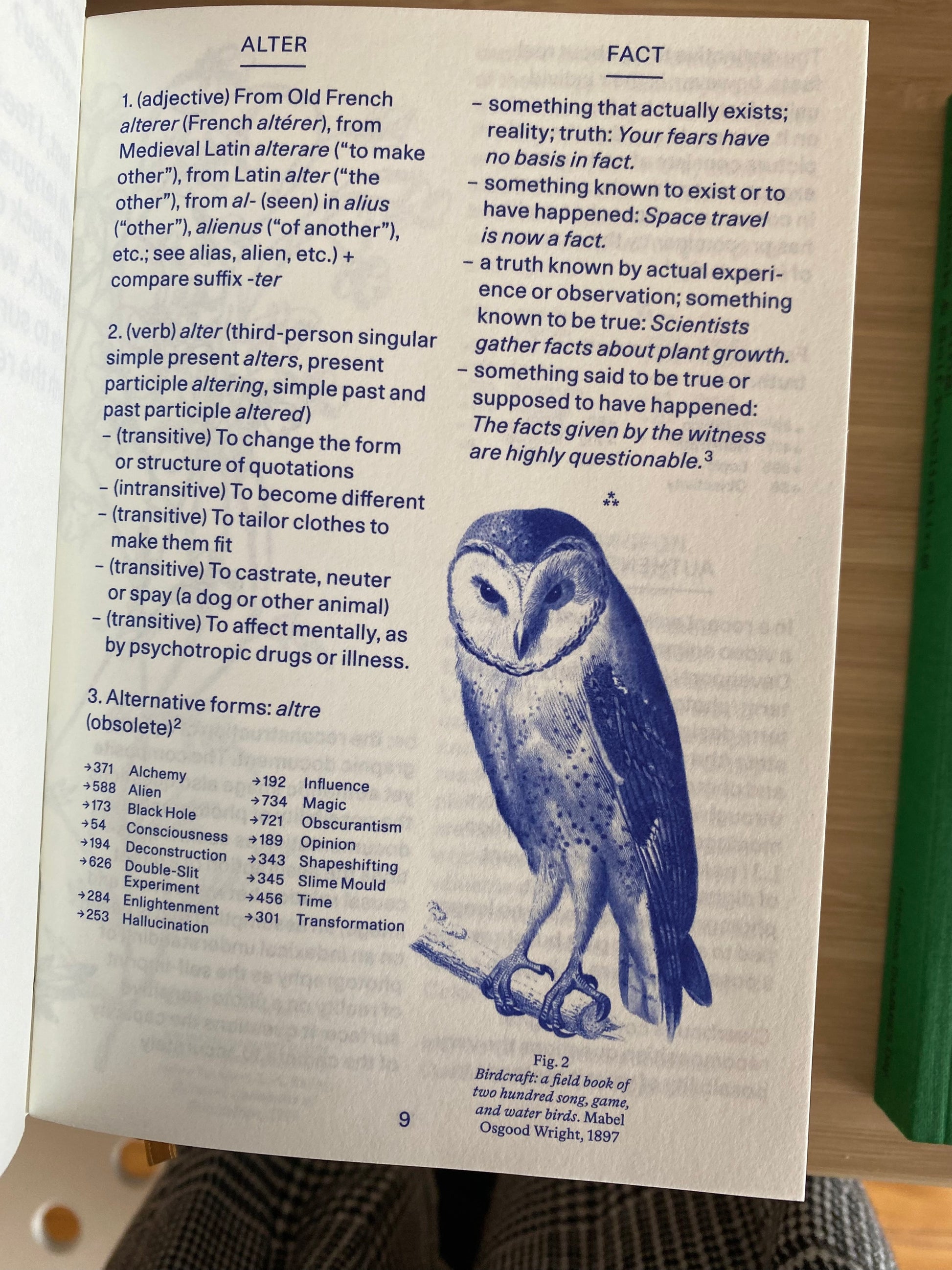From the press: Fascinated by awareness and ignorance, visual artist Anna Püschel began collecting definitions of words related to knowledge from a broad range of sources, from medieval texts to modern dictionaries. While some are objectively true and others are questionable, she nevertheless gathered the various definitions in this volume, a work that redefines referencing while juxtaposing French poetry with conspiracy theories, political essays, and recipes. Regardless of their origin, the definitions imply that we are always yearning for the truth. As individuals in uncertain times, we must acknowledge what we do not know and listen to nuance, for there is beauty in uncertainty.