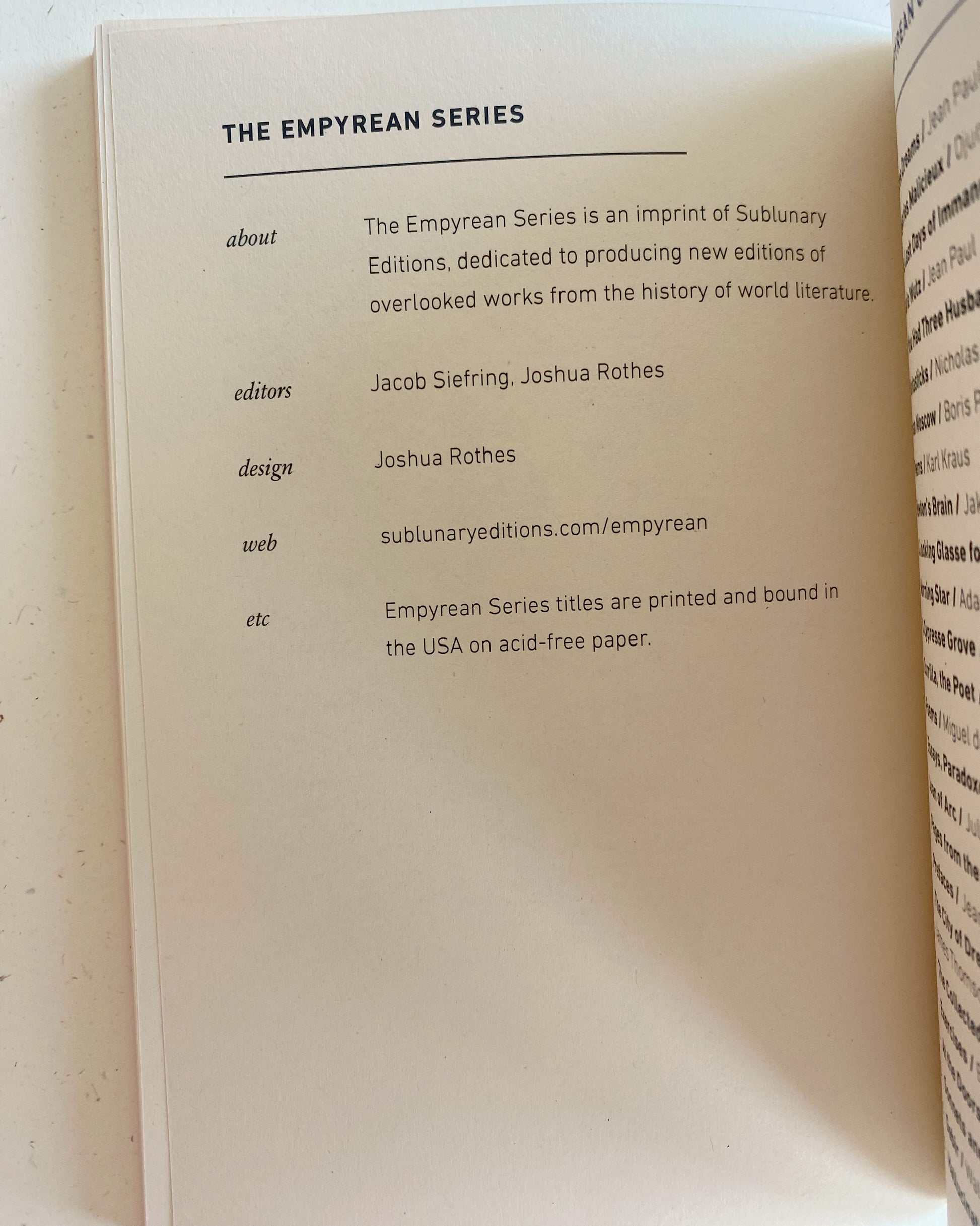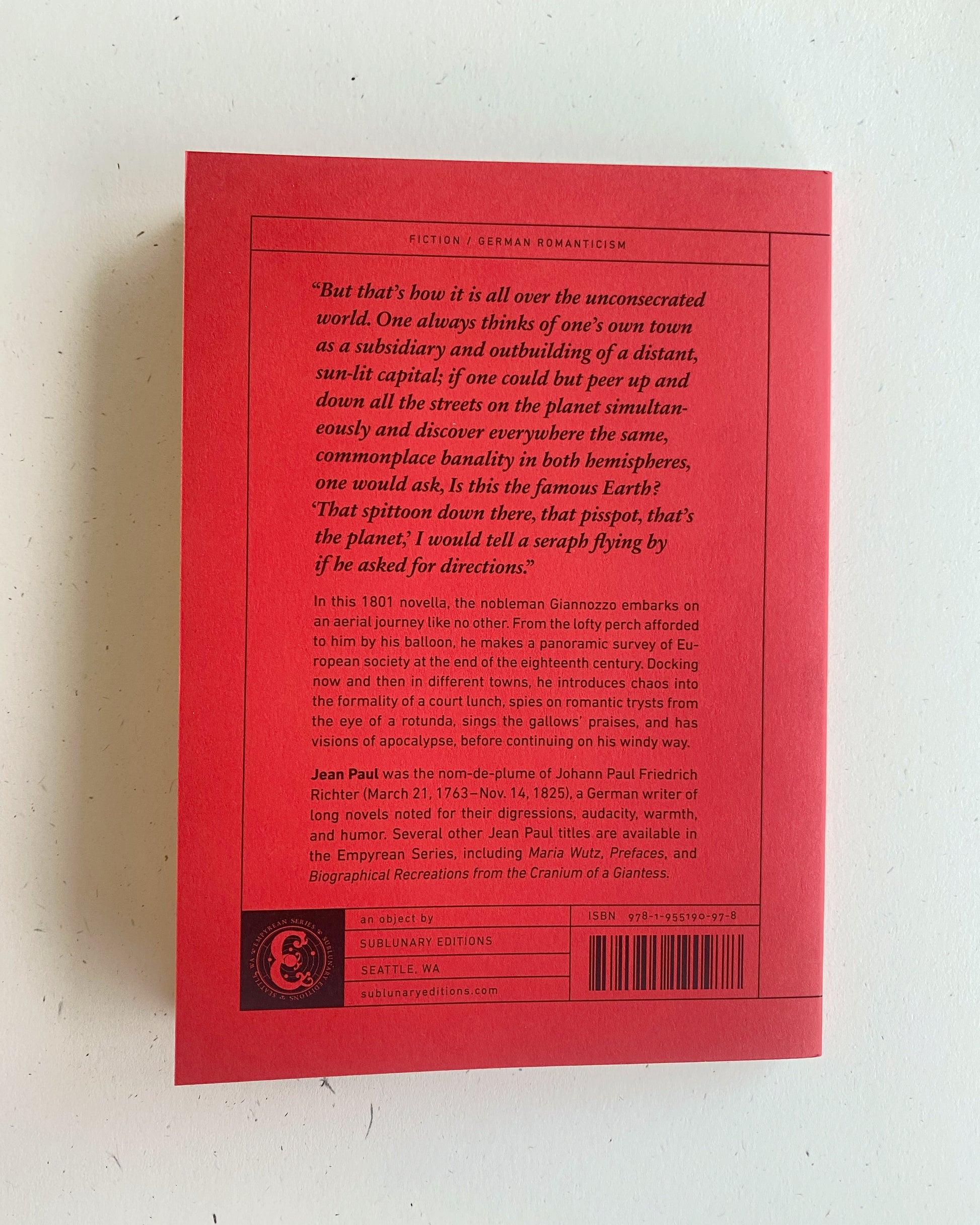 This edition is extensively footnoted, both by the volume's ostensible editor (Jean Paul himself, or his authorly surrogate) and by translator David Dollenmayer, who has left no stone unturned in elucidating the book’s abundant cultural and historical references and allusions.