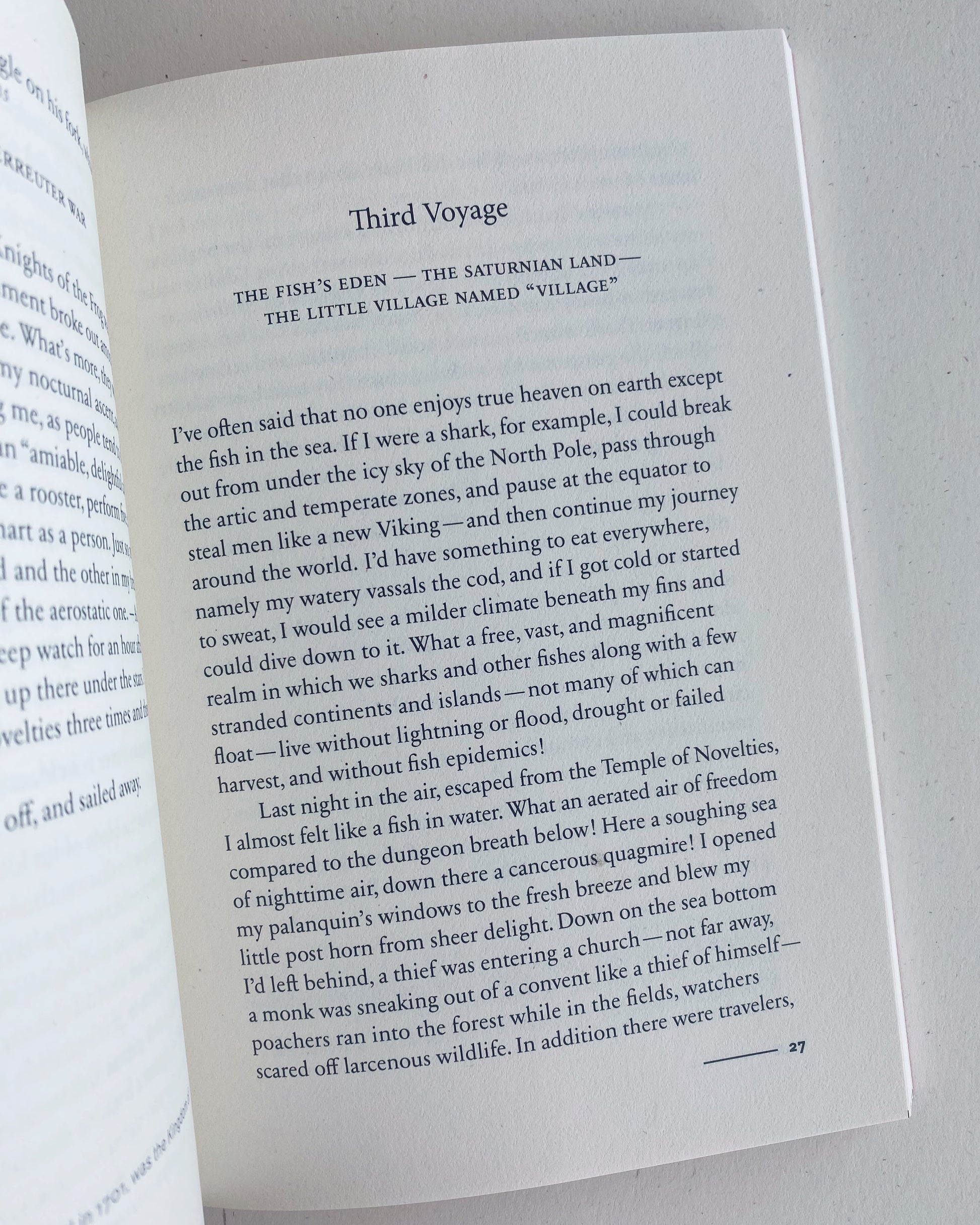 From the press: Long before Jules Verne wrote Around the World in Eighty Days, the German Romantic-era writer Jean Paul dreamt of a balloonist’s voyage when he included this novella as a “comical appendix” to his multivolume novel Titan in 1801. The nobleman Giannozzo one day hears someone say the word revenant and imagines how wonderful it would be to hover over the world like a ghost. He takes flight in a his balloon which he dubs the Quarantine Barrack, and from lofty heights he makes a spiteful survey of central European society at the end of the eighteenth century. Docking daily in different towns, Giannozzo introduces chaos into the formality of a court lunch by unleashing a flight of bats from his pocket, looms as a voyeur over an intimate tryst from the eye of a rotunda, alights at the Brocken peak, and devises a plan for a gallows jubilee, which lands him in prison and on trial.