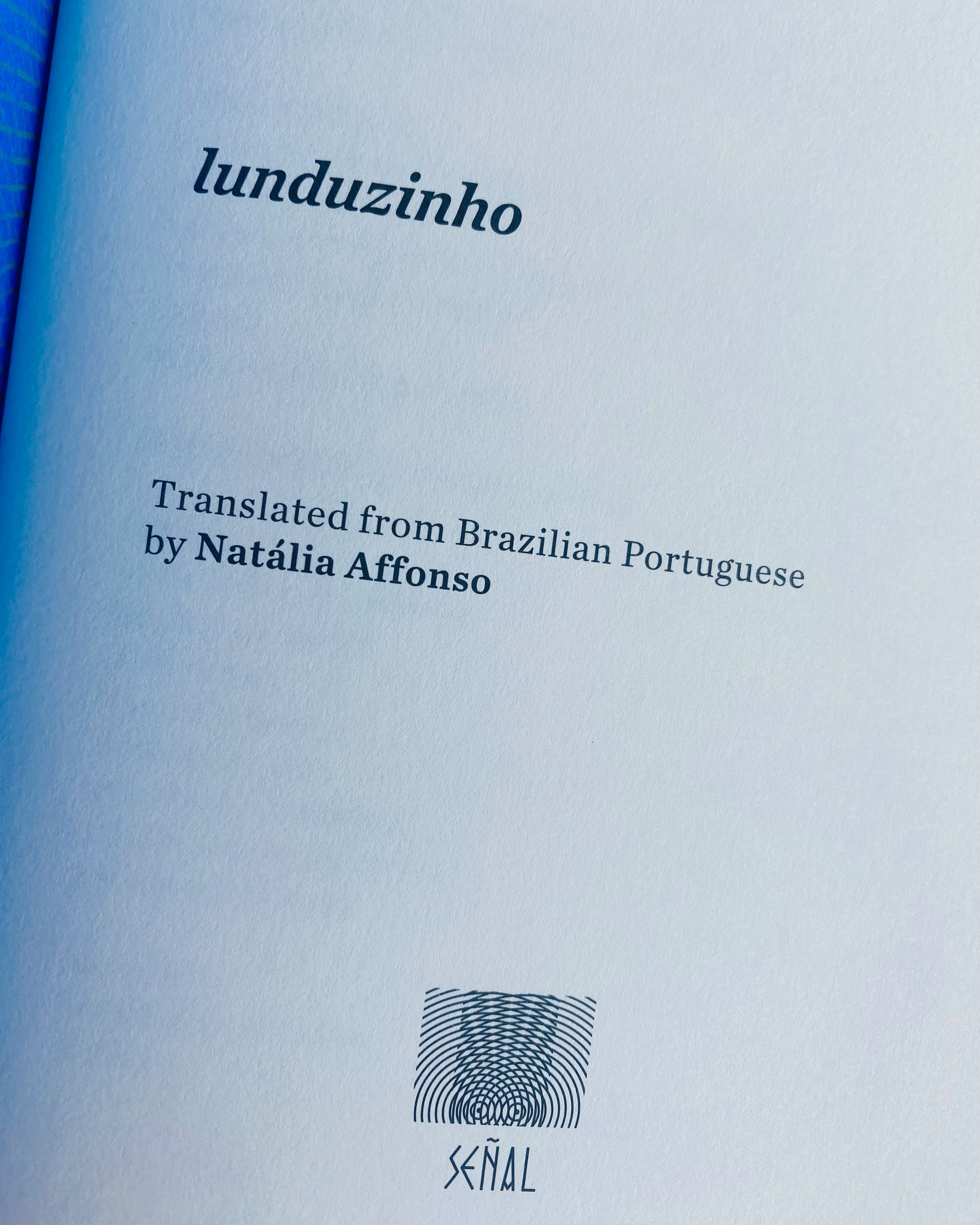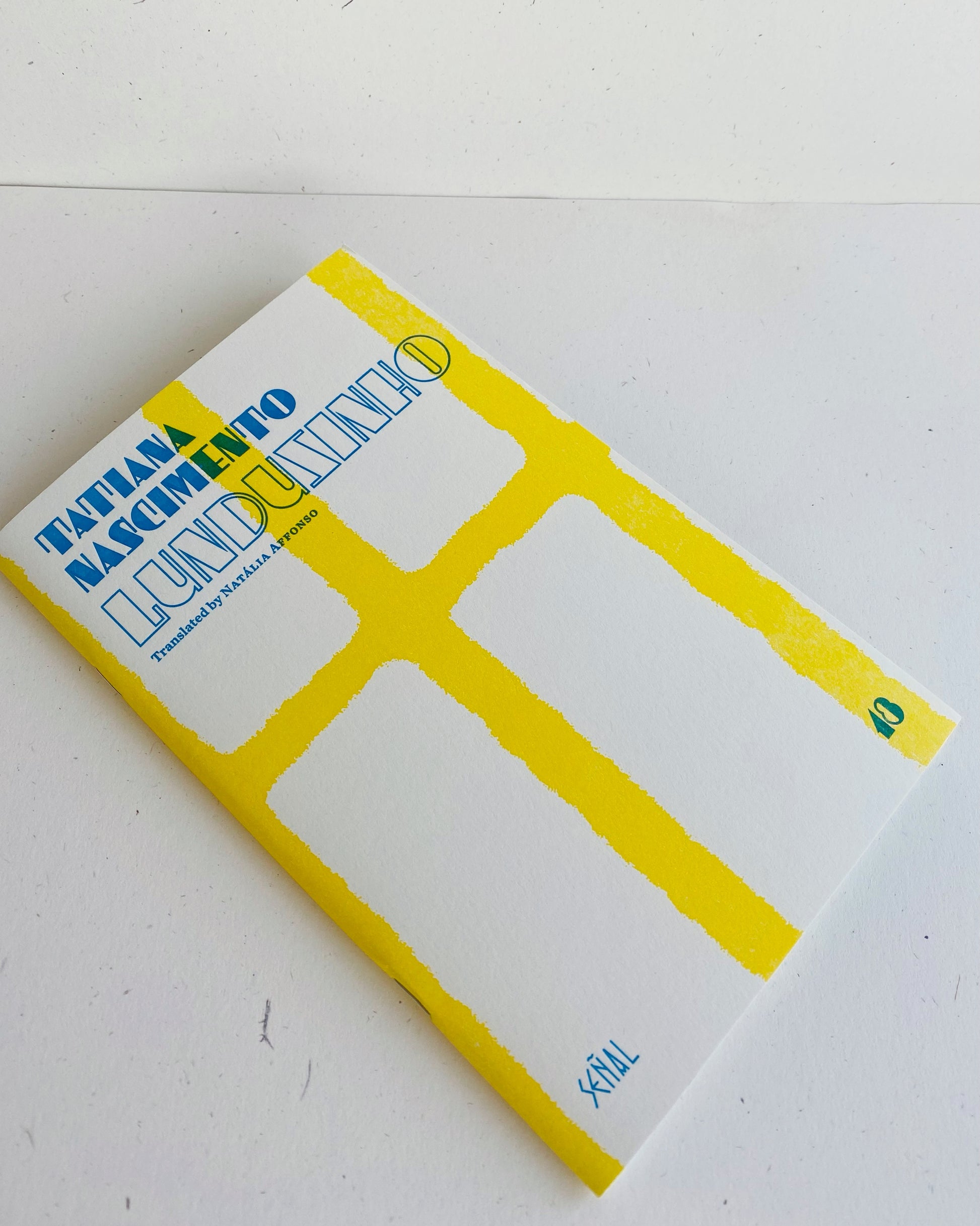 From the press: lunduzinho is a bilingual chapbook of selected poems by Brazilian poet tatiana nascimento, translated by Natália Affonso. This selection is meant as a celebration of tatiana’s acclaimed Lundu (2016) and of her Afro-brazilian, sexual dissident, silence and sea-led poetic craft. “Lundu” is an iteration of music and dance brought to what is now Brazil by enslaved Bantu people. Through her elaborate syntax, bending and breaking standard Brazilian Portuguese, nascimento threads the complexities of the formation of Brazil and the uncapturable African ancestrality of lundu. She creates neologisms and uses elements of Pretuguês (Black Portuguese), Spanish, English, pajubá (an Afro, Indigenous, Cuír Brazilian dialect), and Afro-Brazilian cosmologies to conjure poetry that is deeply rhythmical, spiritual and ancestral. lunduzinho presents us with the contradictions of big urban centers and how Black, queer bodies move across those landscapes. A sea of transnational, Afro-diasporic, sexual dissident affection in the ebb and flow between original and translation, and all the tongues in between.
