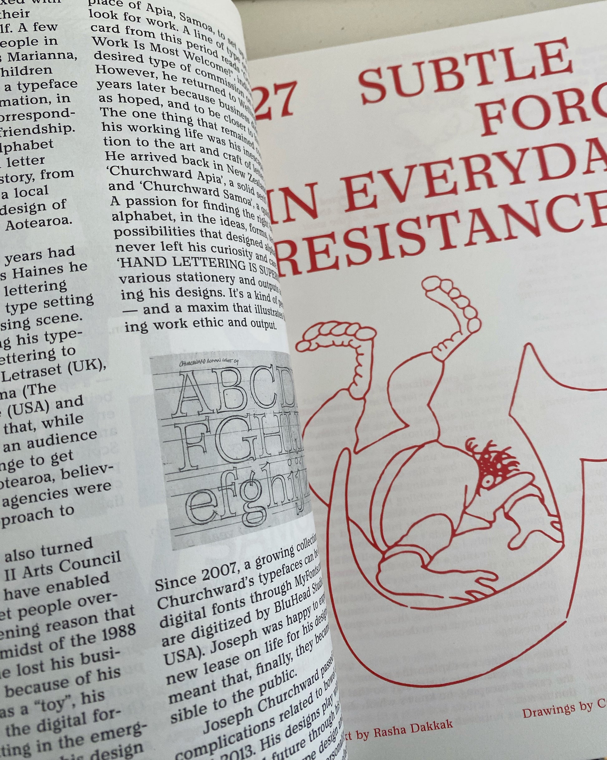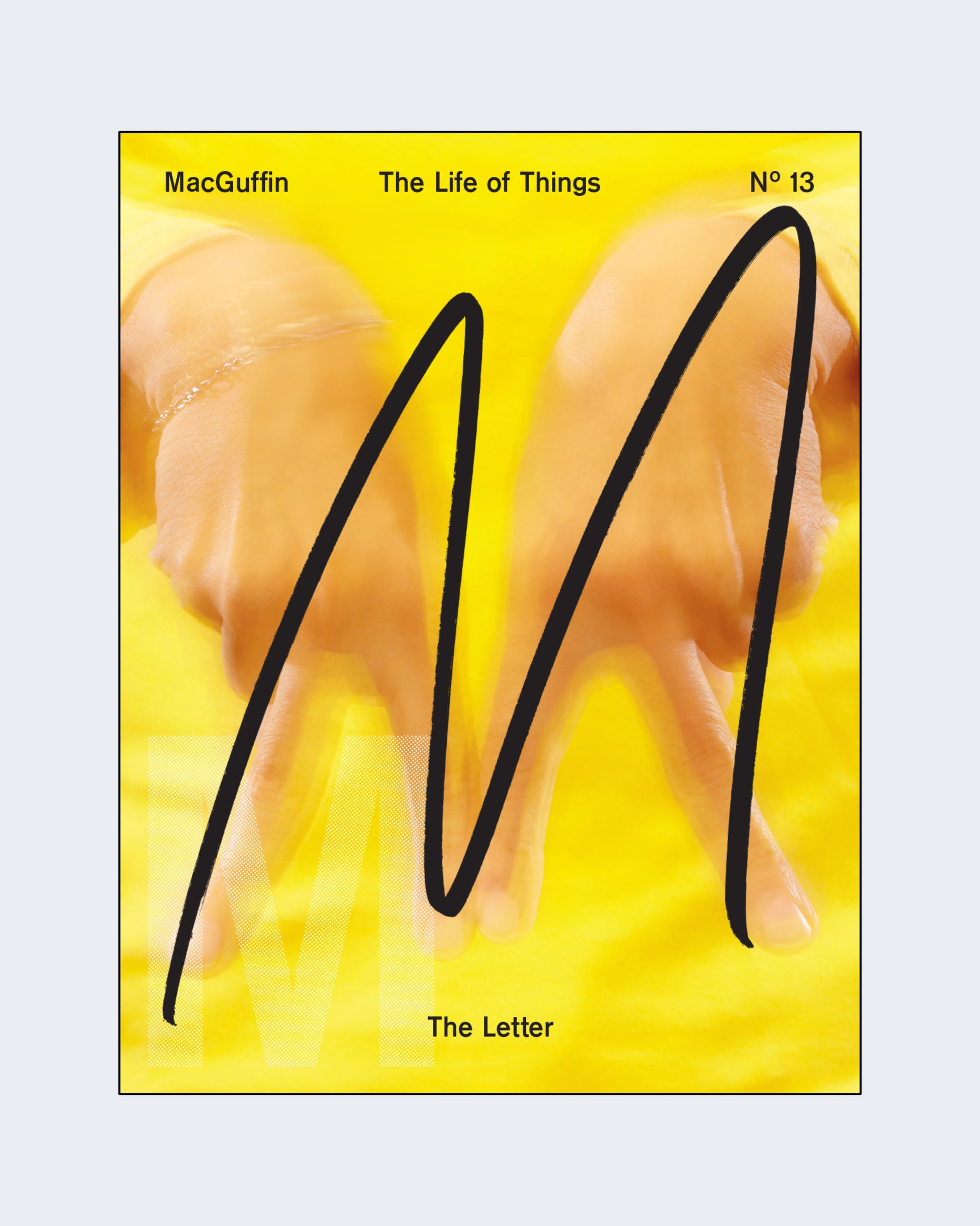 MacGuffin Magazine Nº 13 is dedicated to language’s basic material: the letter, a seemingly modest sign that can be a force of protest and connection. The Letter dives deep into the infinite world of written symbols, taking in Arabic protest and autocorrection, branded bodies and black typography, found fonts and feminist printshops, graffiti and grimoires, internet memes and interrobangs, language labyrinths and left-handedness, Palestinian resistance and queer typography, slogan T-shirts and secret messages. Featuring: Amy Wu, Ben Clark, Chiachi Chao, Daphne Huisden, Emily King, Farah Fayyad, Ginevra Petrozzi, Inna Kochkina, Jess Baines, Julia Born, Karel Martens, Lou Lou van Staaveren, Mari Lebanidze, Natalie Kitroeff, Offshore Studio, Phaedra Charles, Rasha Dakkak, Silas Munro, Tasheka Arceneaux Sutton, Uta Eisenreich, Will Stovall, Xiaohan Zhang, Yinuo Xuanyuan, Zelda de Hart and many more.