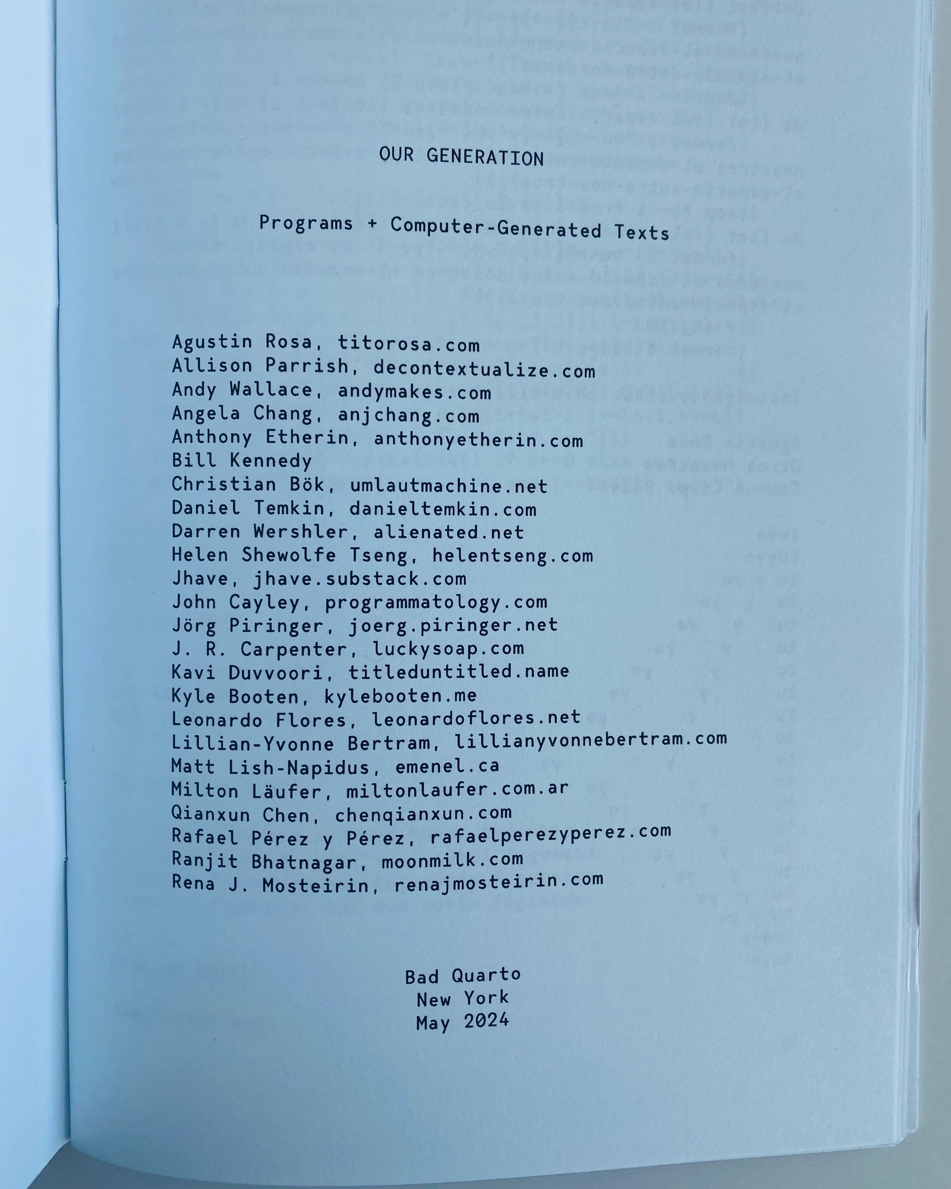 OUR GENERATION: PROGRAMS + COMPUTER-GENERATED TEXTS