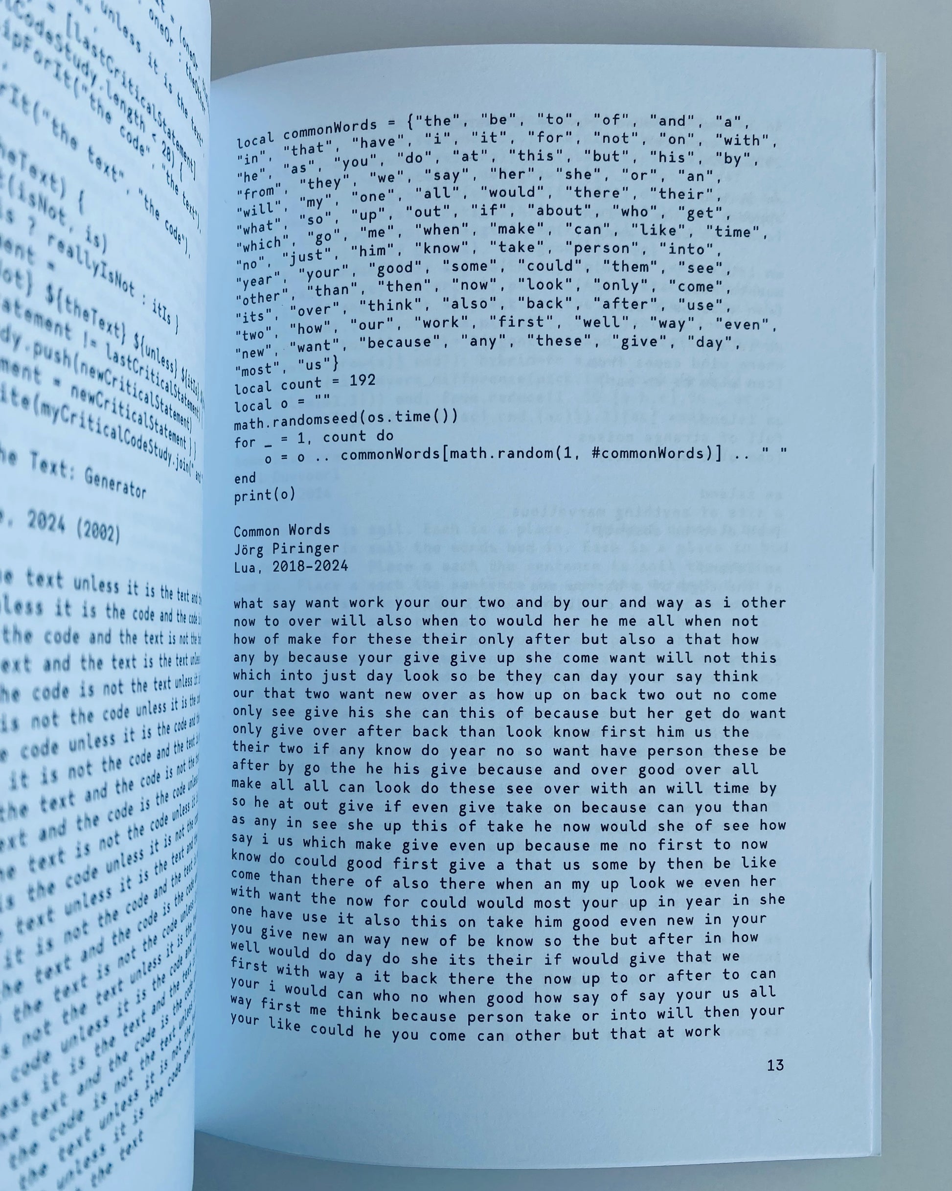 Poetry / Hybrid / Code. Edited and designed by Nick Montfort. Bad Quarto, 2024. Chapbook, color cardstock cover, 24 pages. 8.5" × 5.5"