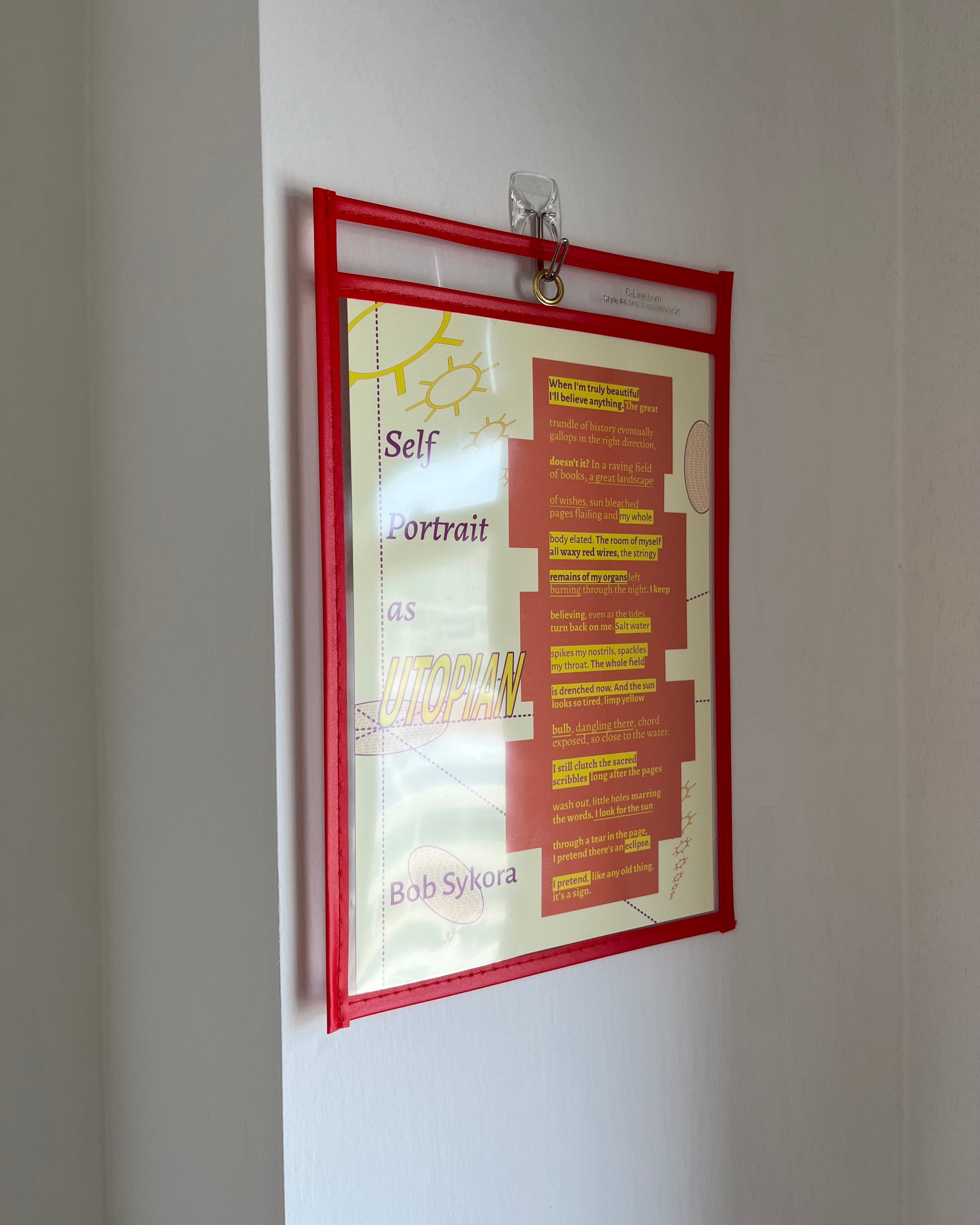 The job ticket holder allows for instant, compliant framing for your broadside. Easily hang it on the wall or slide it in your bookshelf. Ensure adherence to utopian goals while maintaining poetic workflow.