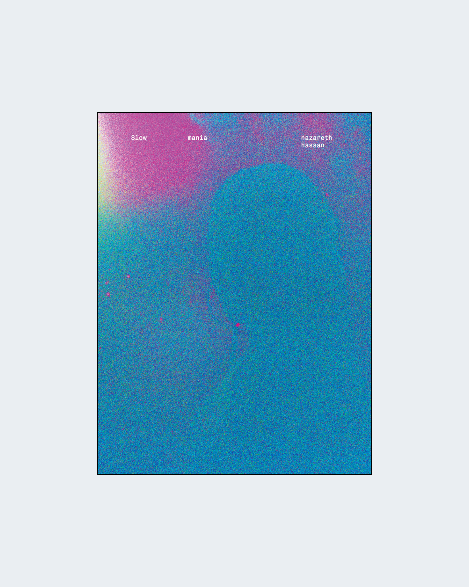 From the press: Nazareth Hassan’s devastatingly brilliant Slow mania is a powerful document of senses and sense-making where estrangement and ugliness meets longing and beauty. The artist begins with a photographic sequence: two white-blue sky panels; a shattered glass storefront window; a street gutter clutching leaves, smashed straw sleeves and plastic lids; then snow holding a disassembled red stained chest of drawers. These are the writer’s plinths where form as waste is configured: “smoggy breath thru burnt-edged holes tracking acid mucous inside your home.” Slow mania provokes through enumerative structures, for instance, “screening bodies” who keep a sex club’s gates open only to some: “…197 mmm maybe lemme think / 151 yes / 162 yes / 197 ok yes, but keep your shirt on.” The poet deftly folds human intimacy into interspecies metaphor: “The rat torso twitches in agreement. Across / the street, the flies continue to starve,” where “…you’re lost in your own hole: what did you find?” Hassan attends to this painful search, bearing witness to the disturbingly exultant, offering a radical state of being, in and out of which the stunning and timely Slow mania lives and thrives. — Ronaldo V. Wilson