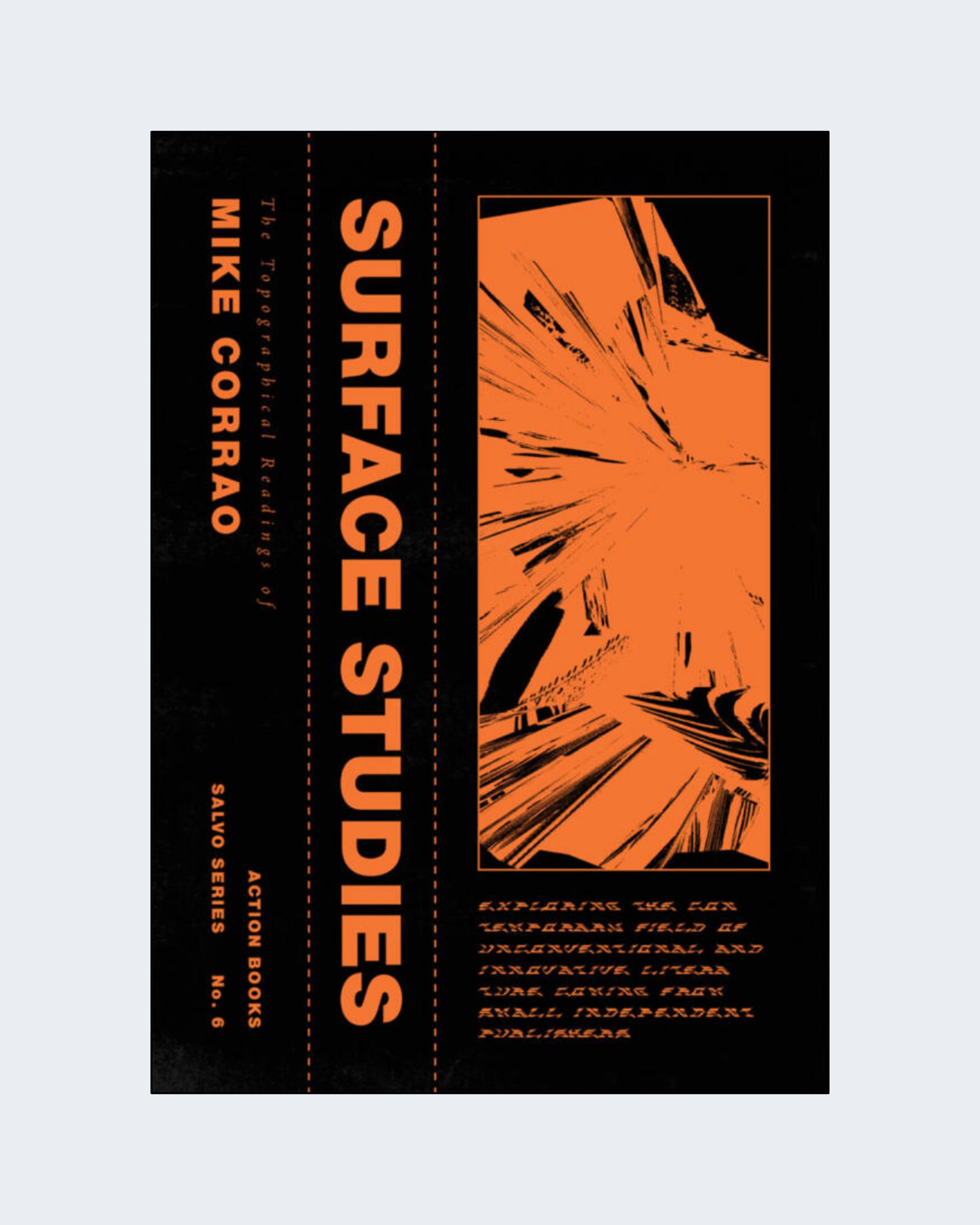 In Surface Studies, Mike Corrao takes “close reading” to a new level of radical intensity. His writing about the sprawling literature of the US underground is driven by profound fascination; his experience of the texts is somatic and dynamic. If Sontag asked for an erotics to take the place of a hermeneutics, Corrao reveals that the two can exist as one.