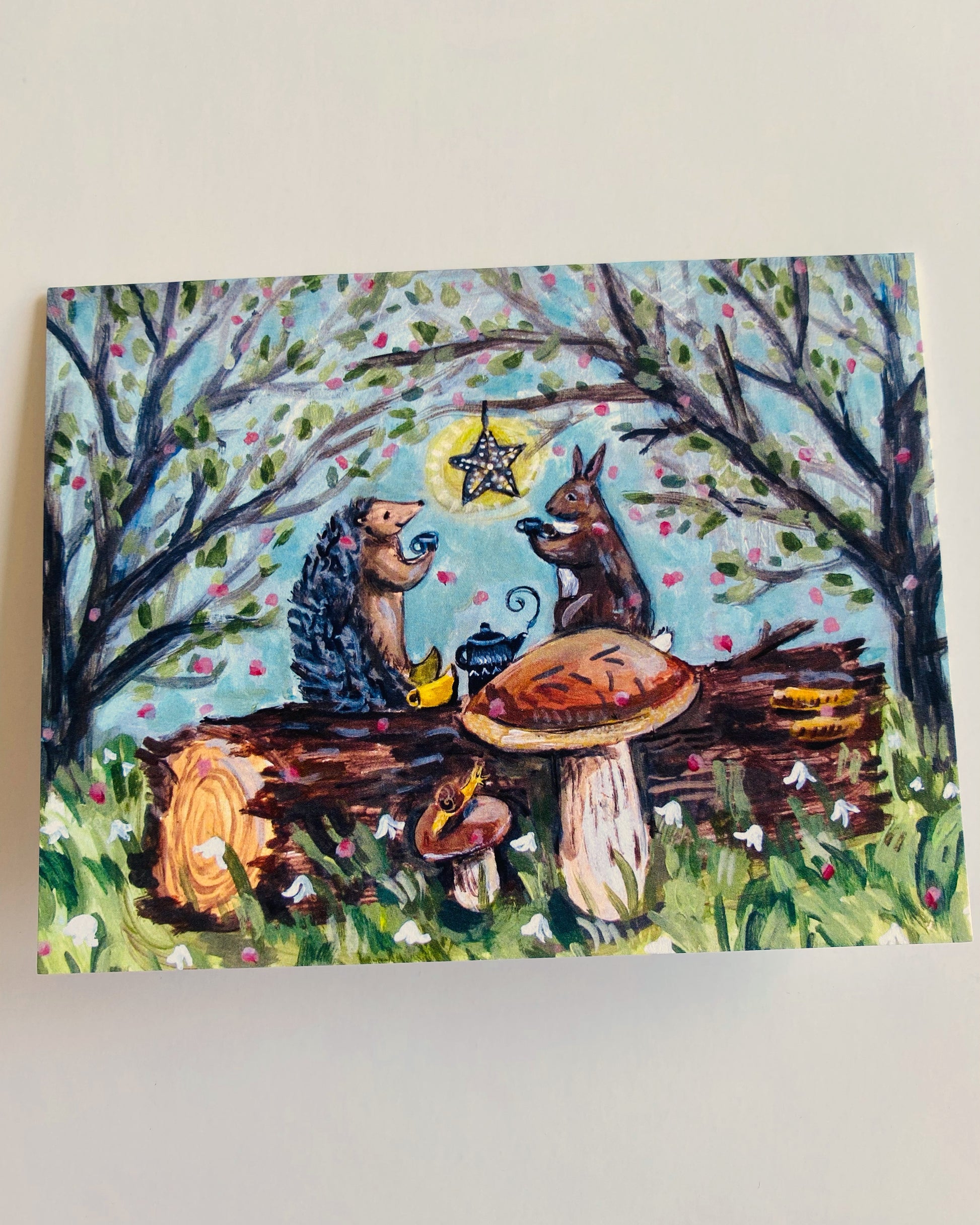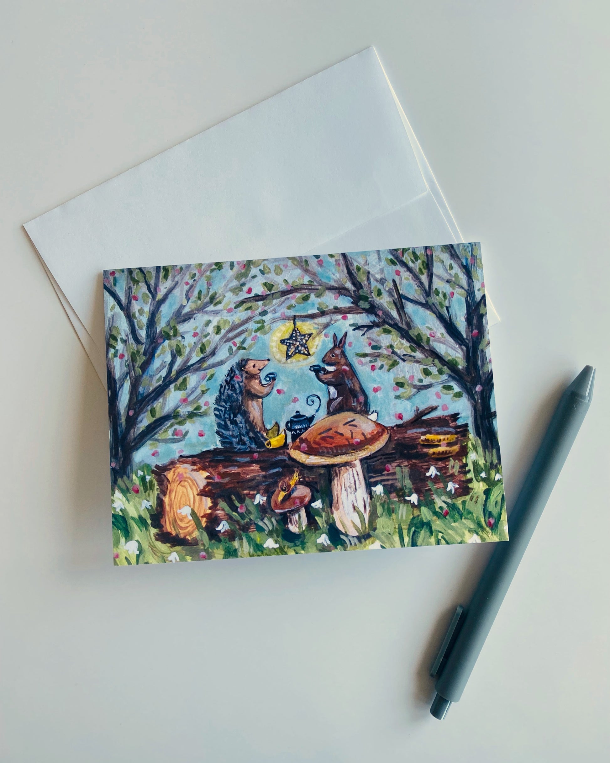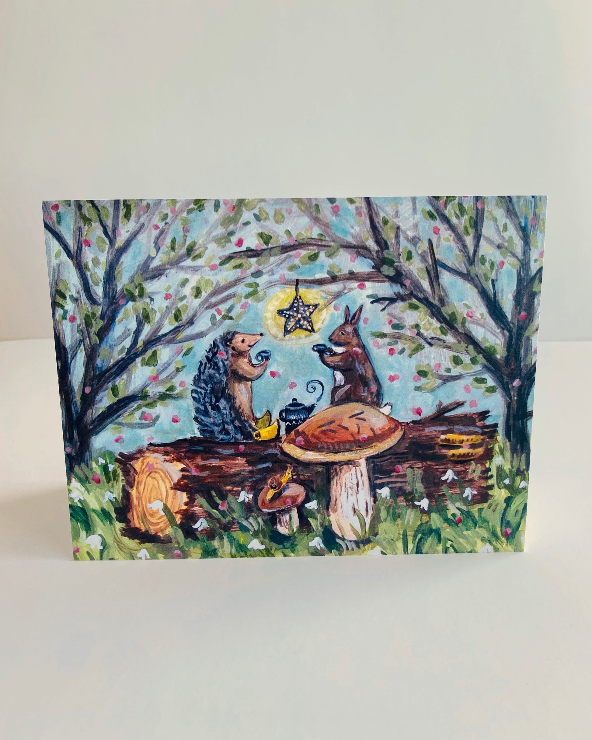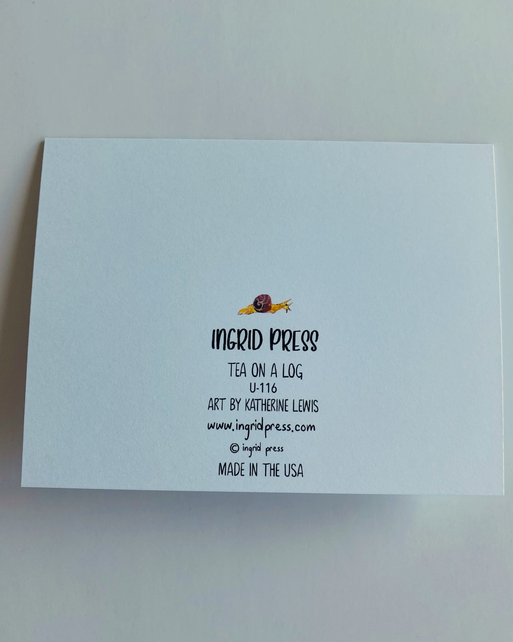 Ingrid Press, art by Katherine Lewis. Printed on un-coated white stock, white envelope. Blank inside. Size A2 4.25” x 5.5”