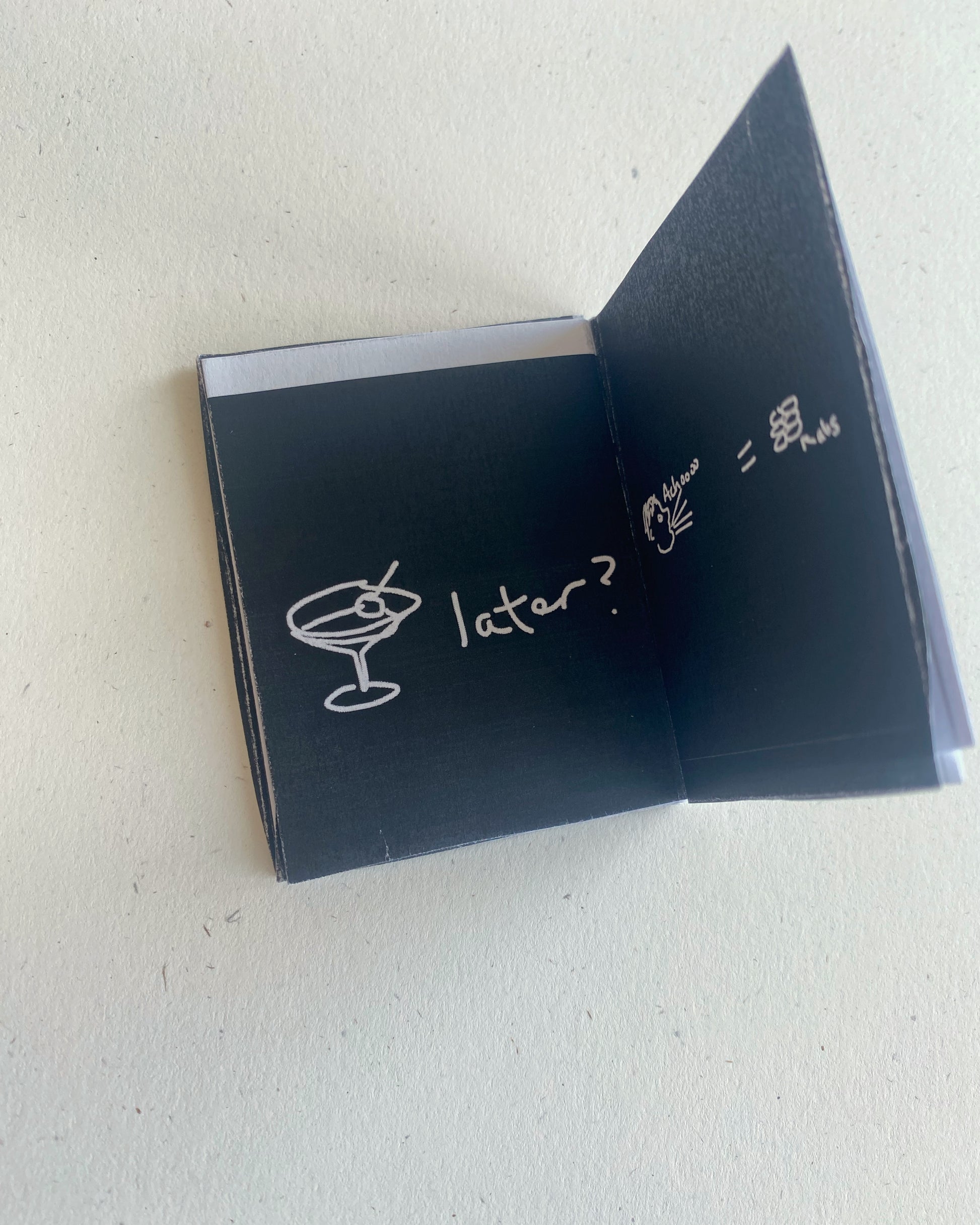 From the press: A 16-page minizine, a collection finger-drawn digital line drawings sent as messages to various recipients via iPhone from 2018 to 2024, inkjet printed in NYC.