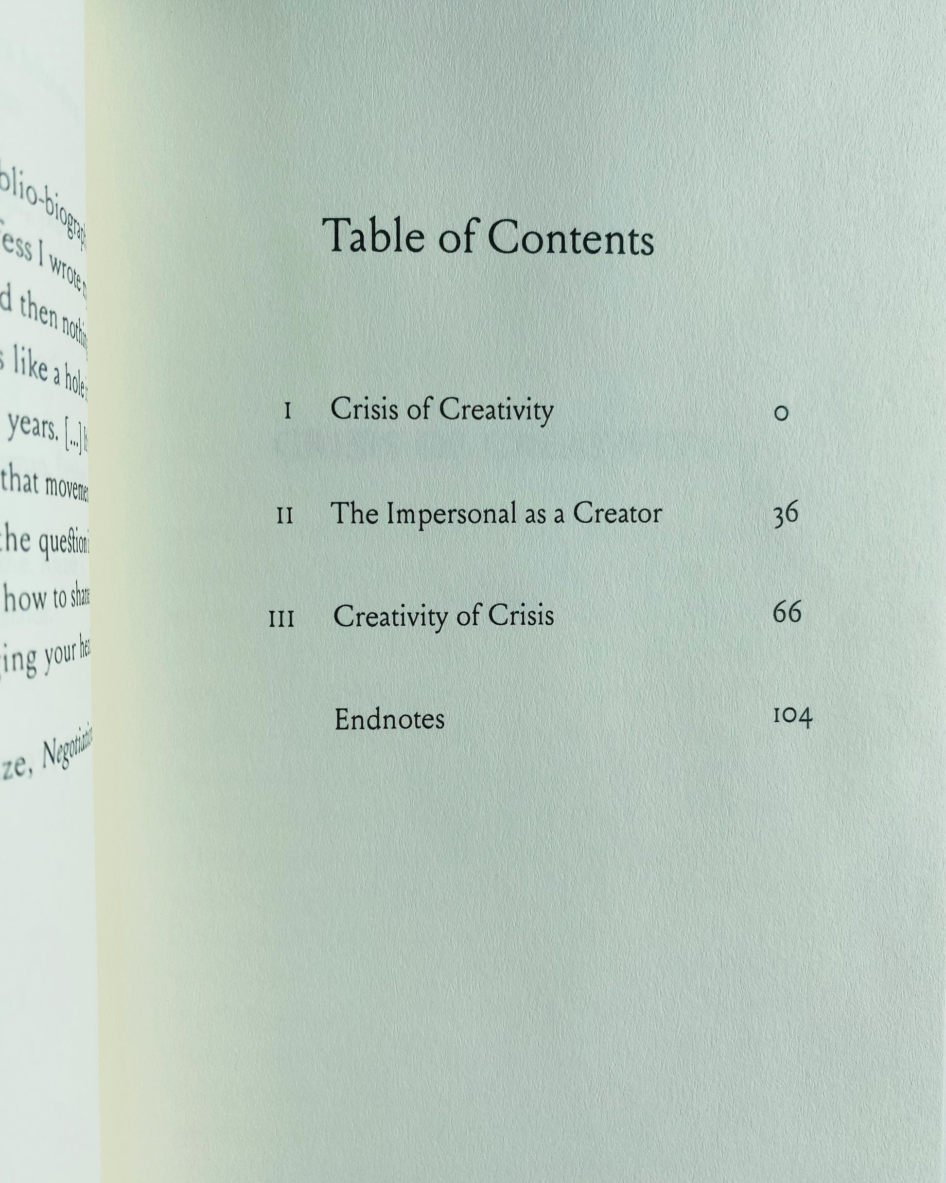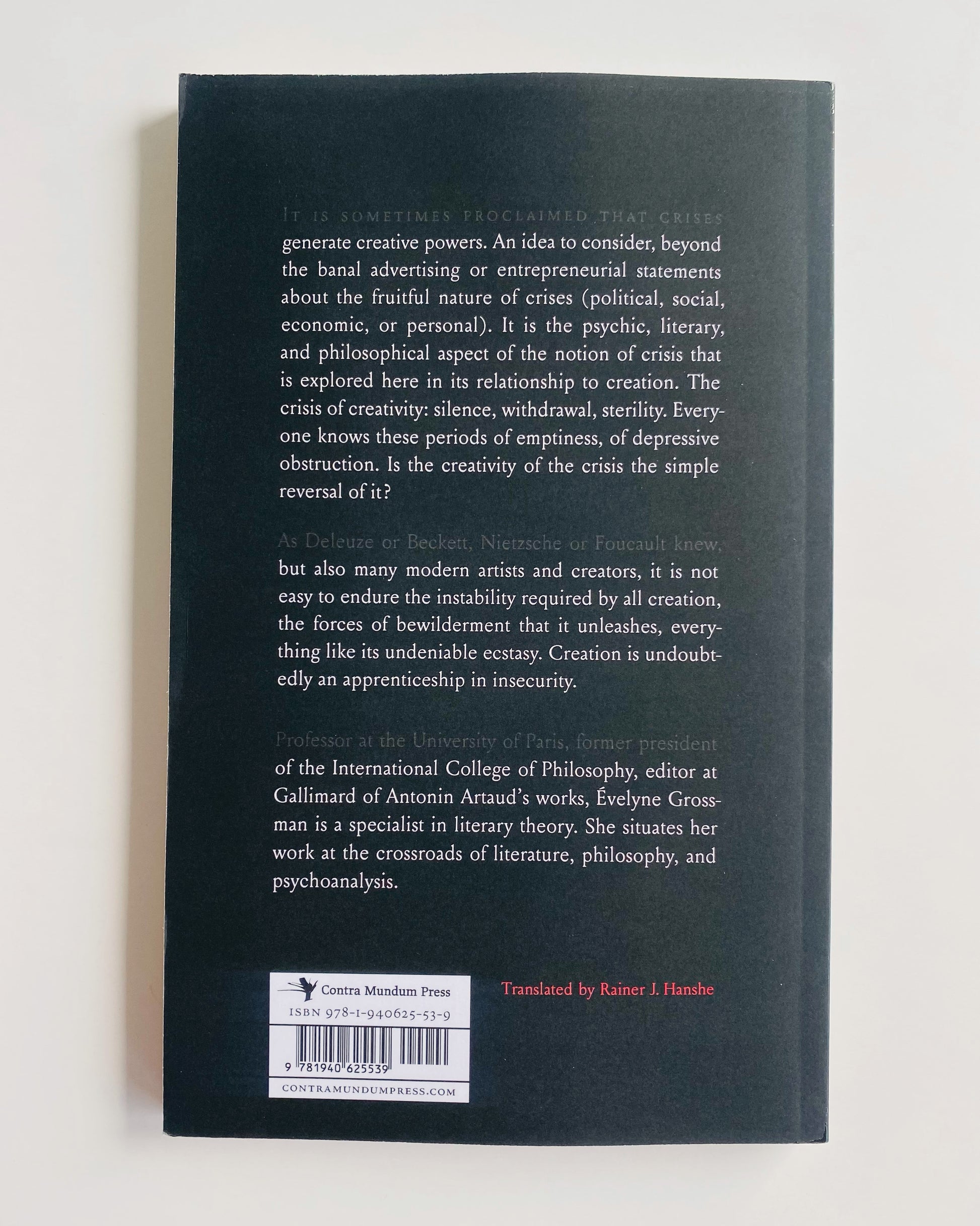 From the press: It is sometimes proclaimed that crises generate creative powers. An idea to consider, beyond the banal advertising or entrepreneurial statements about the fruitful nature of crises (political, social, economic, or personal). It is the psychic, literary, and philosophical aspect of the notion of crisis that is explored here in its relationship to creation. The crisis of creativity: silence, withdrawal, sterility. Everyone knows these periods of emptiness, of depressive obstruction. Is the creativity of the crisis the simple reversal of it?
