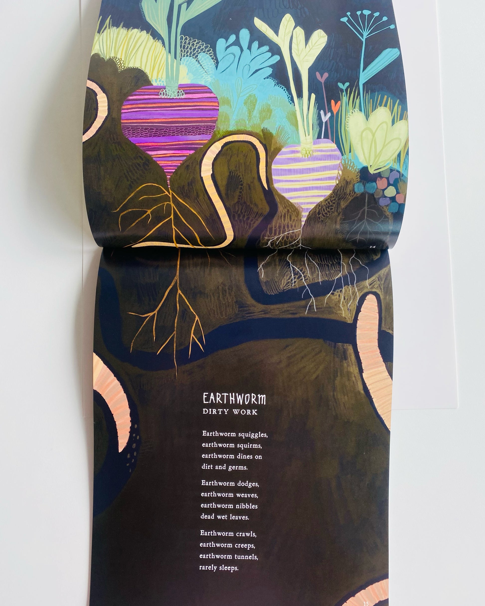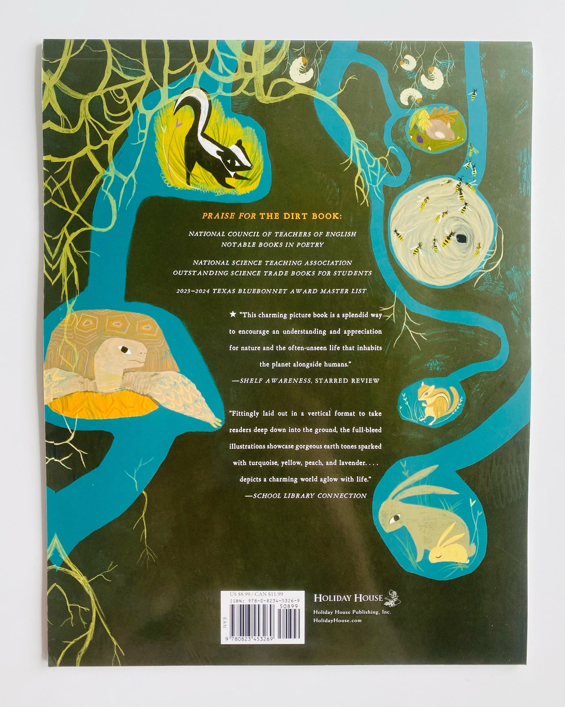 Spectacular vertical panoramas illustrating life underground accompany 15 funny, fascinating poems that explore dirt and the many creatures that make their homes underground. Spiders, earthworms, ants, chipmunks and more crawl across the pages, between stretching roots and buried stones.