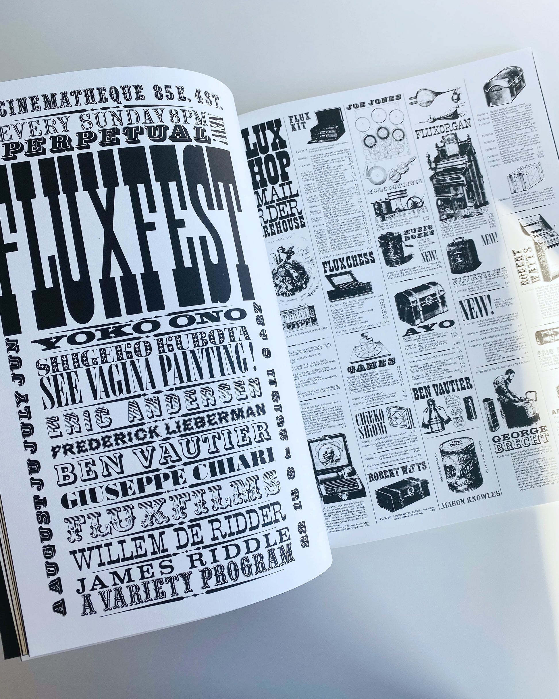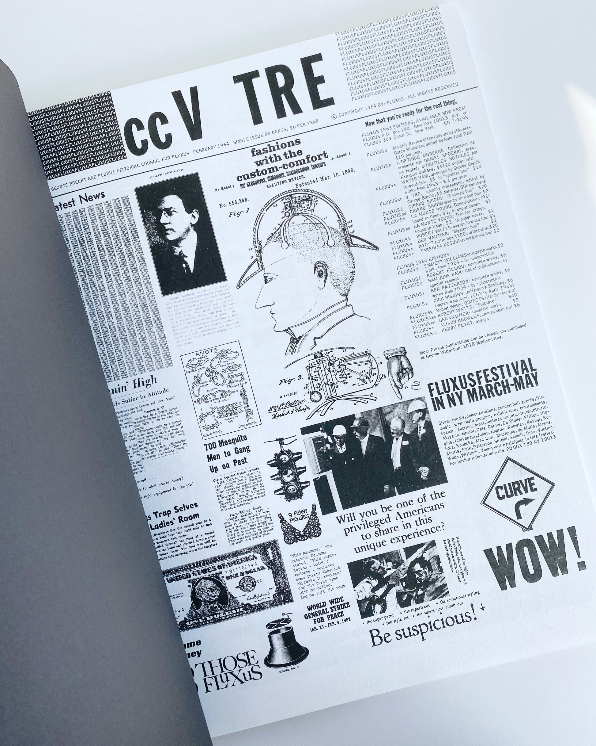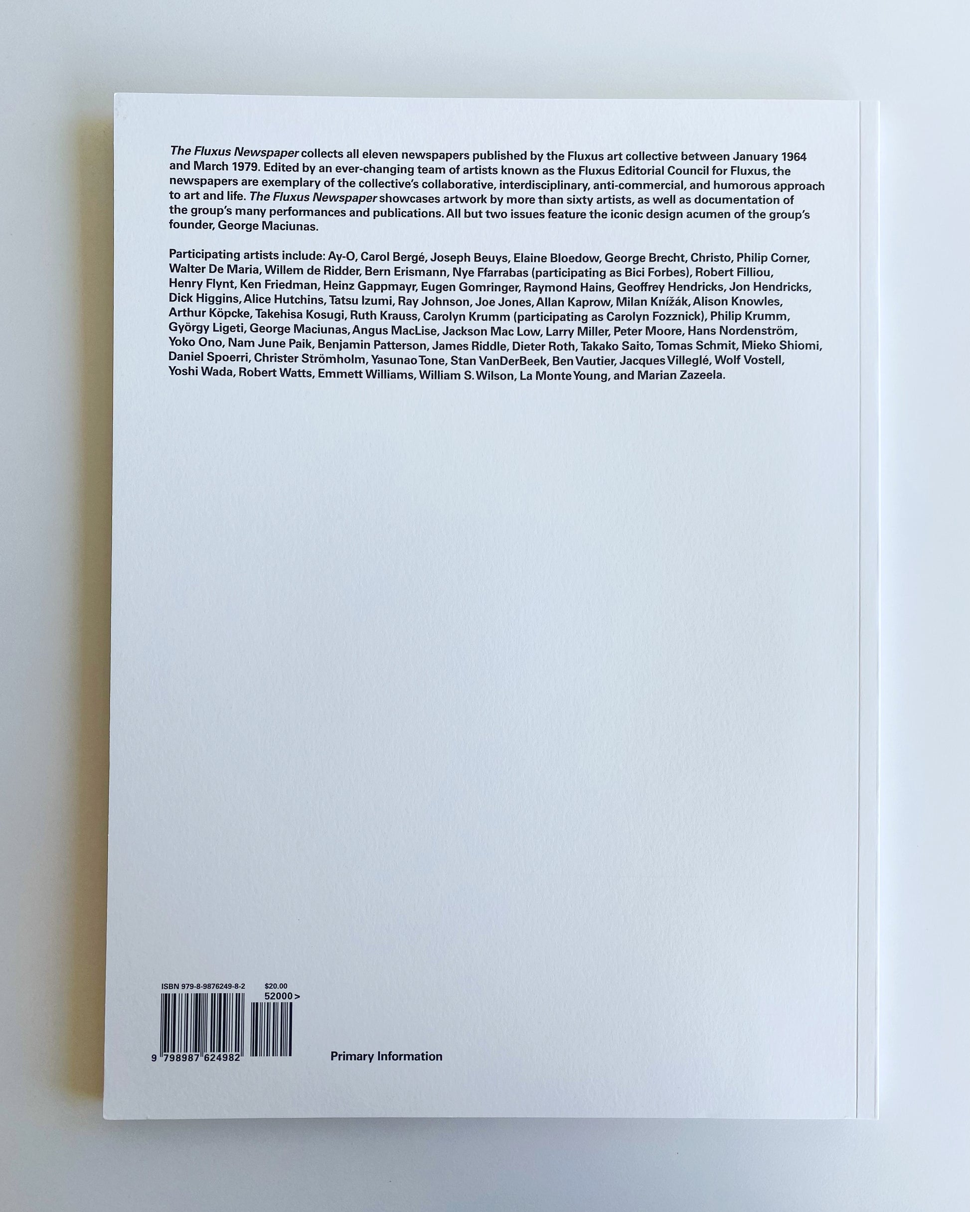 From the press: The Fluxus Newspaper collects all eleven newspapers published by the Fluxus art collective between January 1964 and March 1979. The newspapers were edited by an ever-changing team of artists known as the Fluxus Editorial Council for Fluxus and every issue, except the last two, was designed by Fluxus founder George Maciunas.