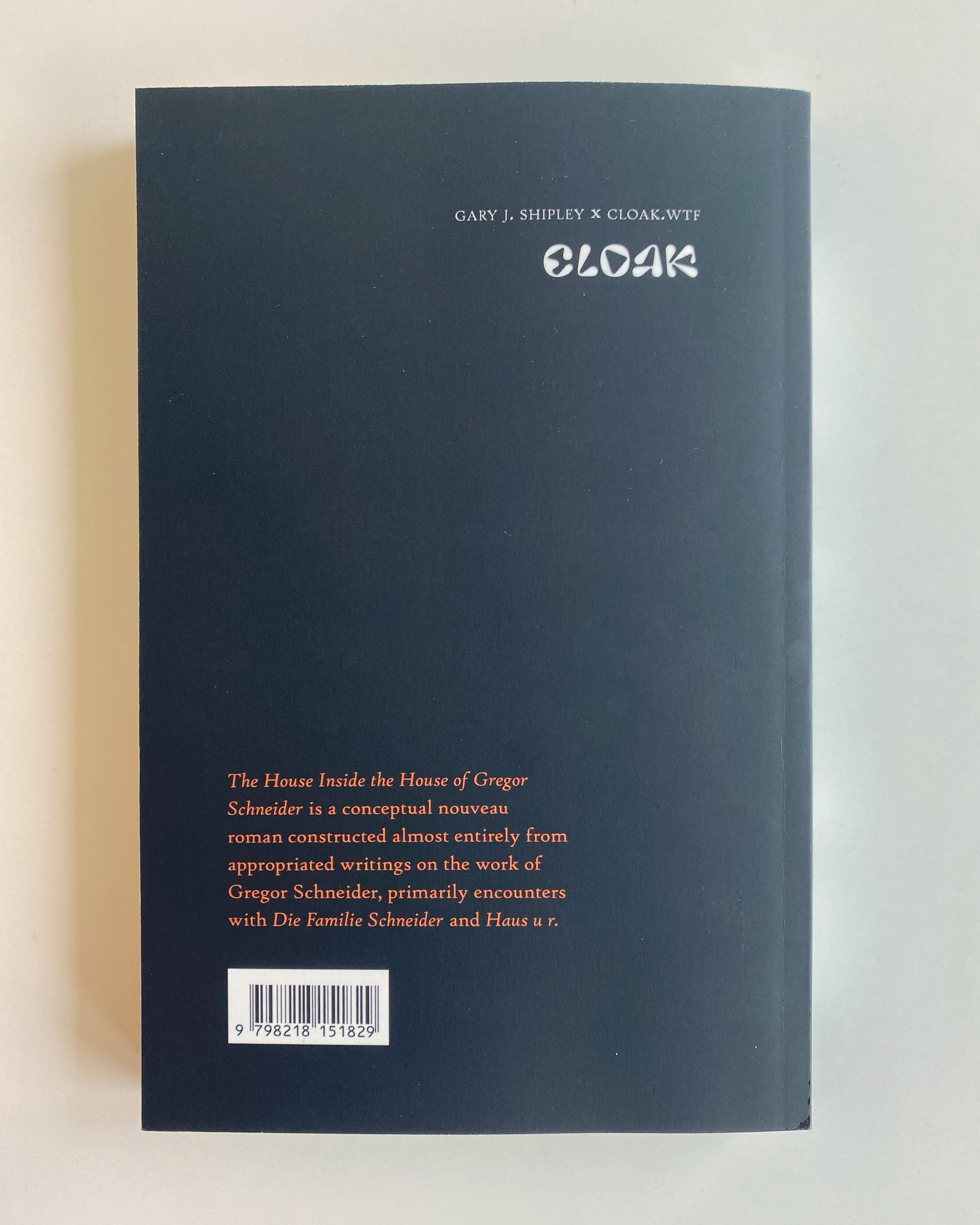 The House Inside The House of Gregor Schneider is a conceptual nouveau roman constructed almost entirely from appropriated writings on the work of Gregor Schneider, primarily encounters with Die Familie Schneider and Haus u r.