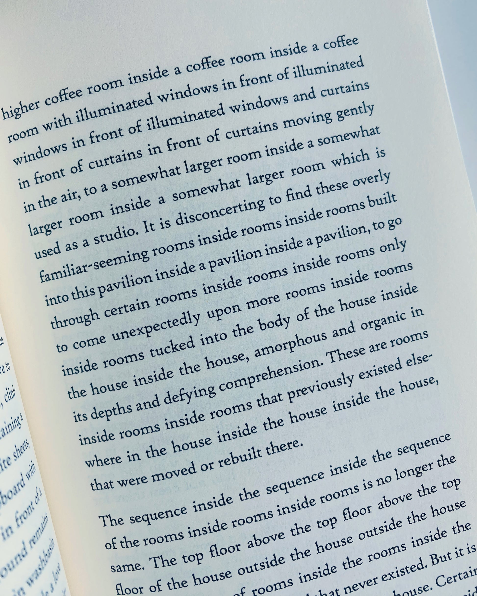 From the press: A narrator is trapped inside a house, where their search for an exit ends up only adding to its walls, its ceilings, its floors, its rooms.