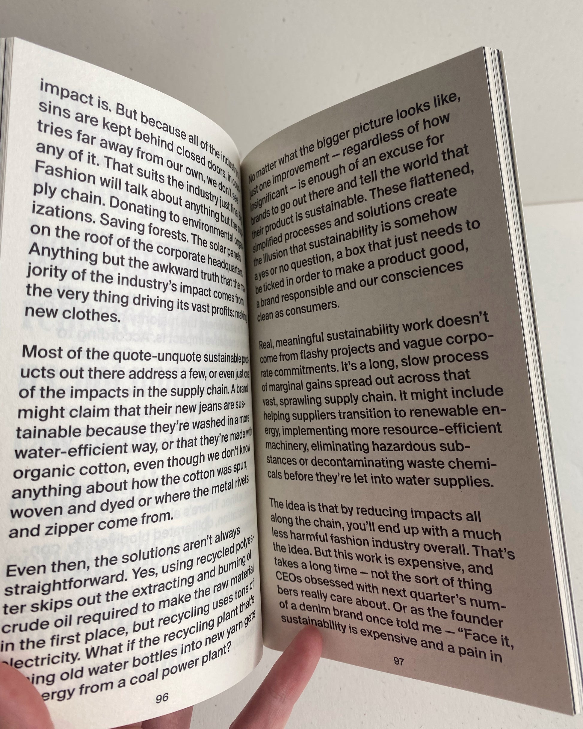 From the press: We know fashion is bad for the planet, so why are we still shopping? As a former fashion editor for streetwear publication Highsnobiety and the founder of sustainable fashion platform @future__dust, Alec Leach feels like he is in a good place to figure that out. He wrote this book to explain why we love to shop so much, how fashion keeps us hungry for more, and the tricks it plays to cover up its true impact on the planet.