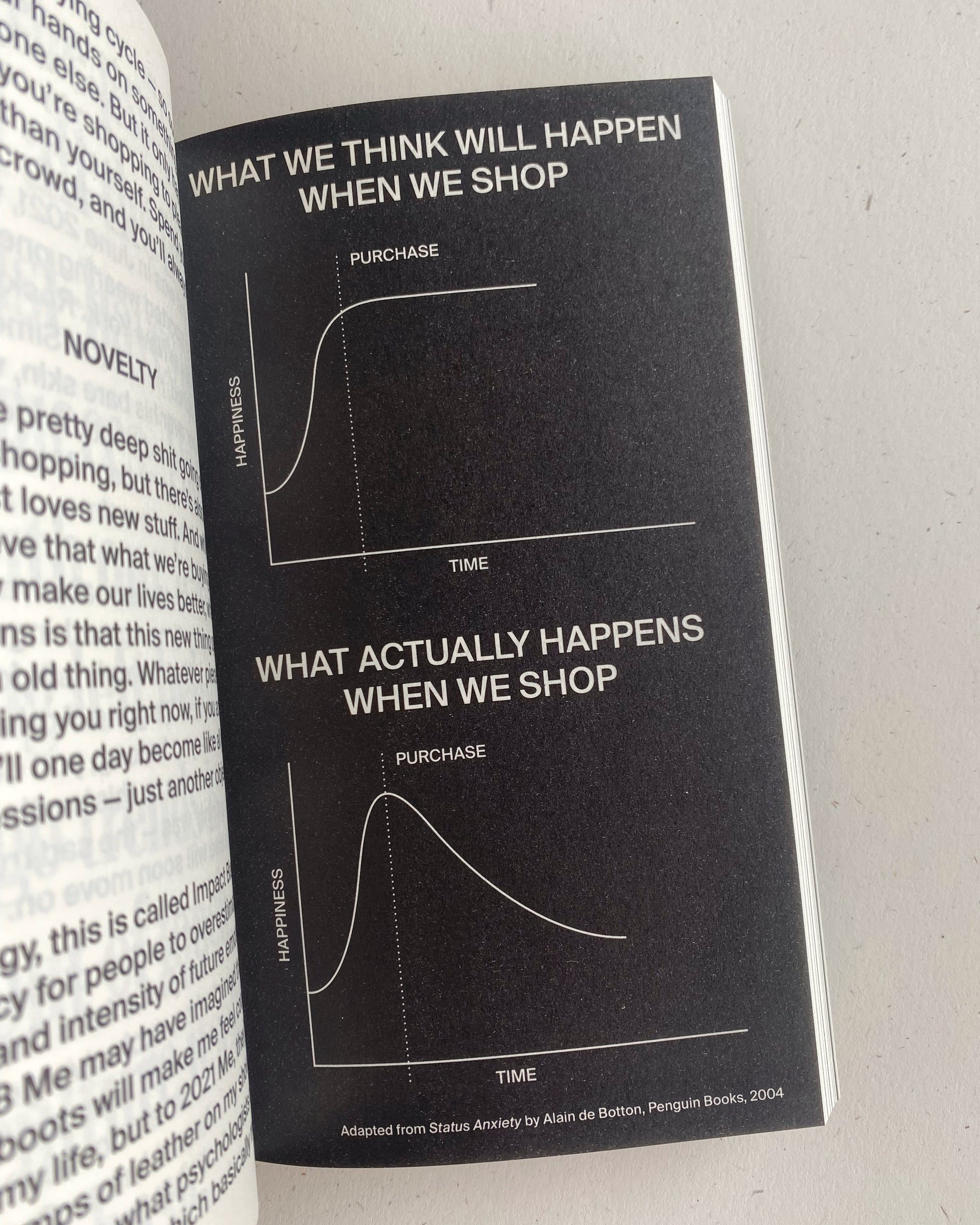 It's a journey touching on consumerism, sneaker hype, greenwashing, Karl Marx, mindfulness and everything in between. The result is a manifesto for a slower, more intentional approach to fashion, one that redefines what shopping is - and what it isn't.