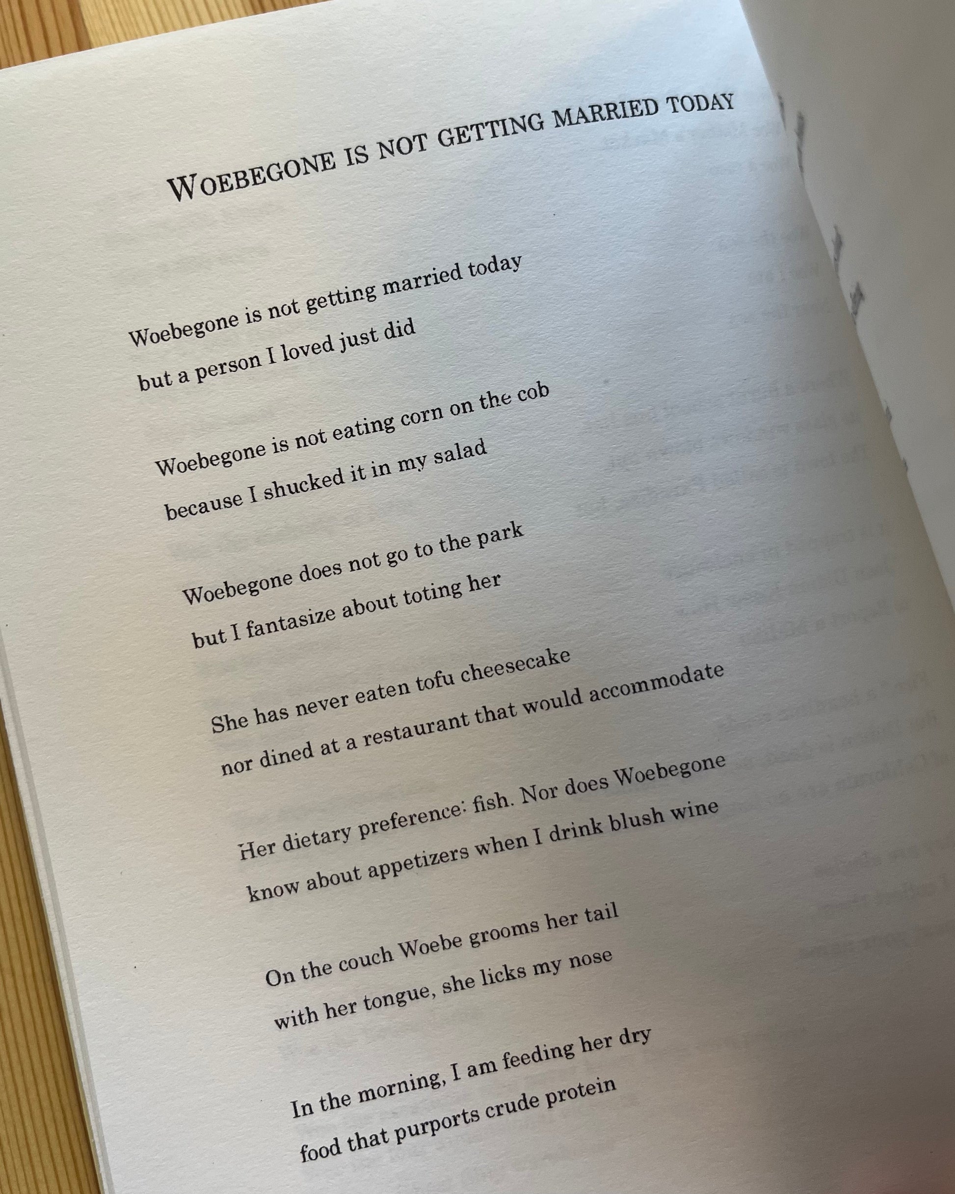 From the press: Woebegone and Other Poems introduces Claire Donato's exacting clarity and revelatory experimentation to the devotional mode with a collection that turns her cat into a screen for reflections on love, writing, and death. Woebegone struggles in being both the ghost of dead Brix and a real cat herself. She enjoys drinking from faucets and staring at pigeons. Donato inscribes her into the forever home of literature's greatest muses.